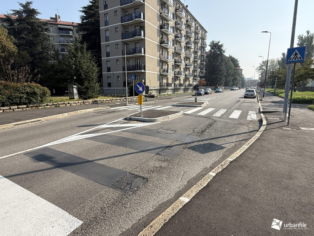 L’intervento ha inoltre previsto la riqualificazione degli spazi pedonali: davanti alla chiesa parrocchiale di San Galdino è stato realizzato un nuovo attraversamento pedonale rialzato, così come di fronte al Parco Guido Galli.