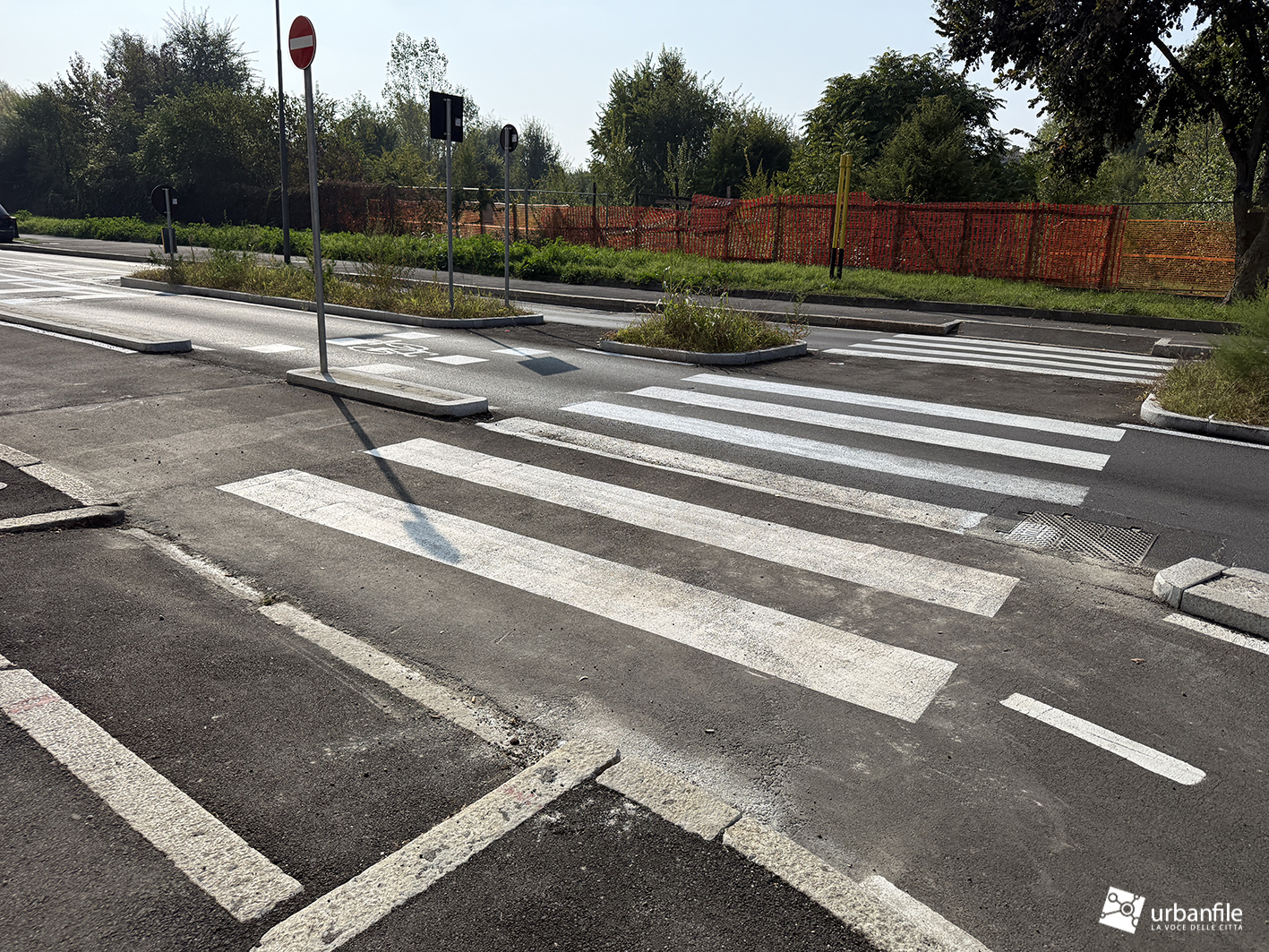 L’intervento ha inoltre previsto la riqualificazione degli spazi pedonali: davanti alla chiesa parrocchiale di San Galdino è stato realizzato un nuovo attraversamento pedonale rialzato, così come di fronte al Parco Guido Galli.