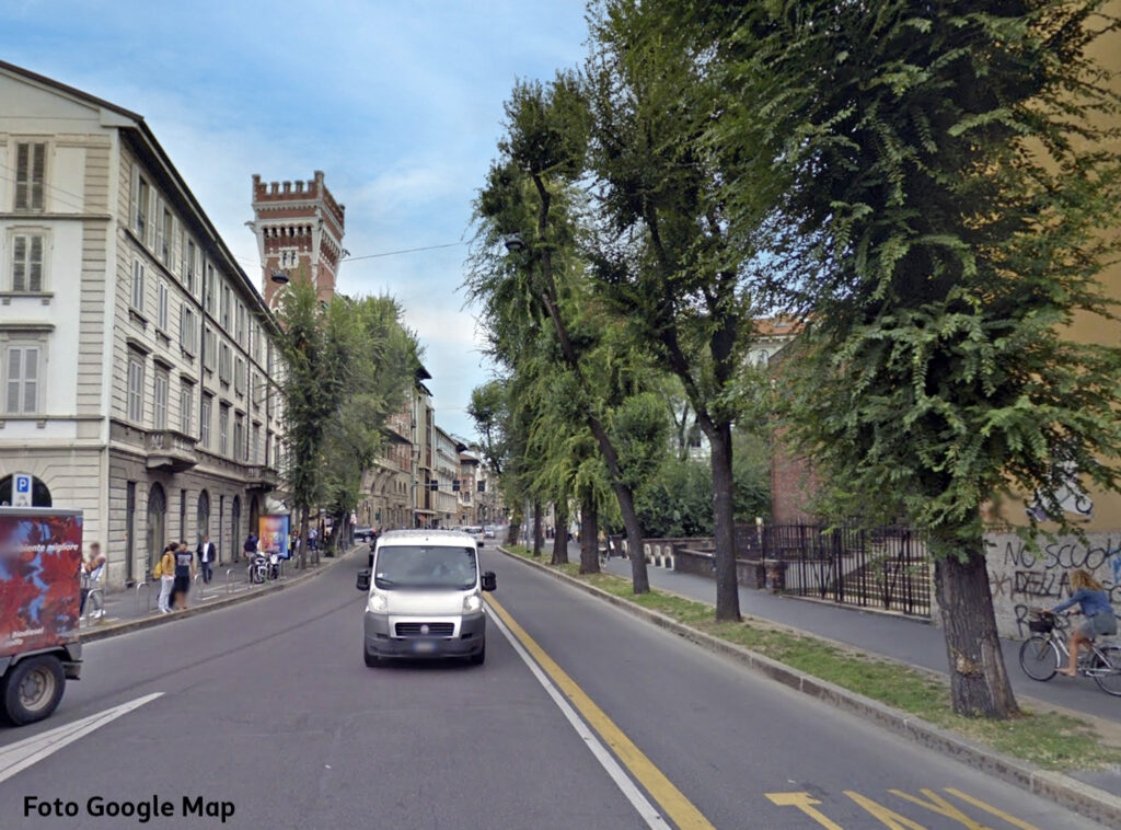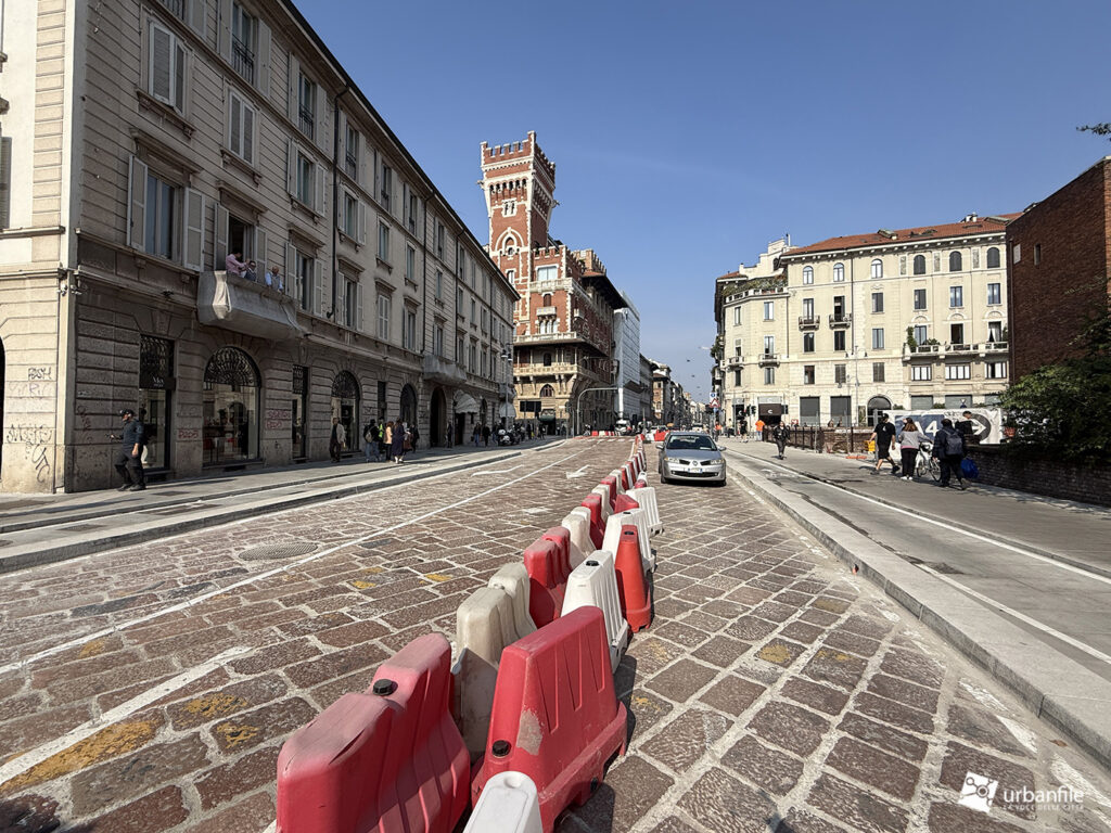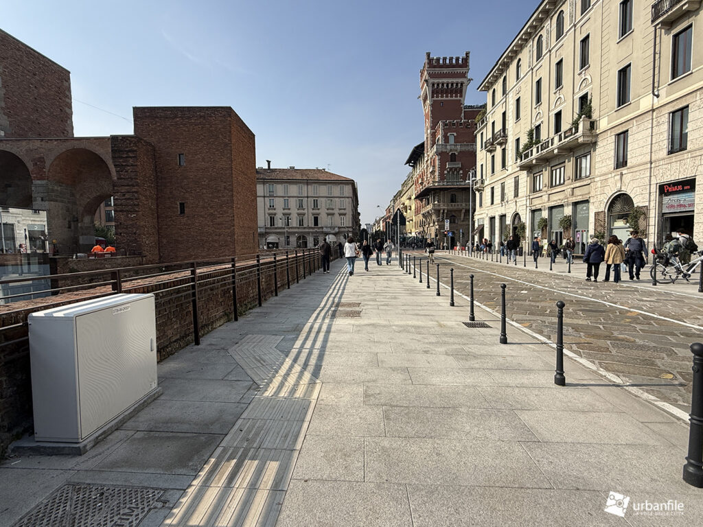 Di seguito alcune immagini del tratto di via Carducci davanti alla Pusterla di Sant’Ambrogio.