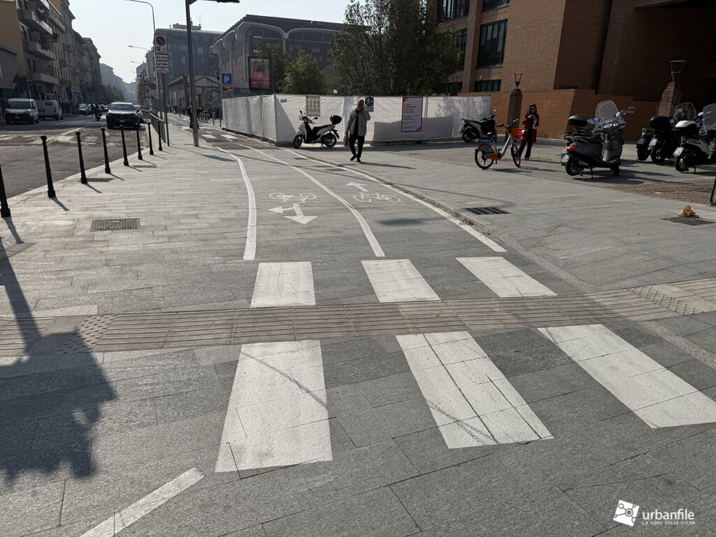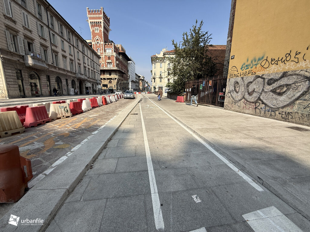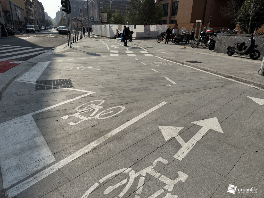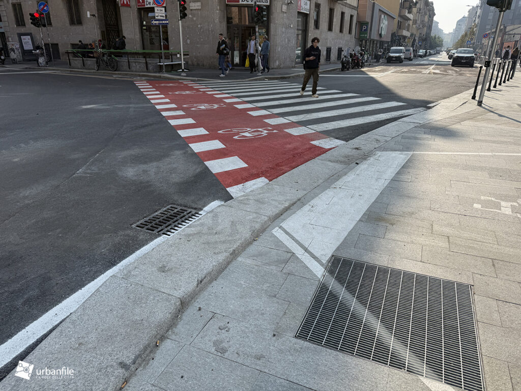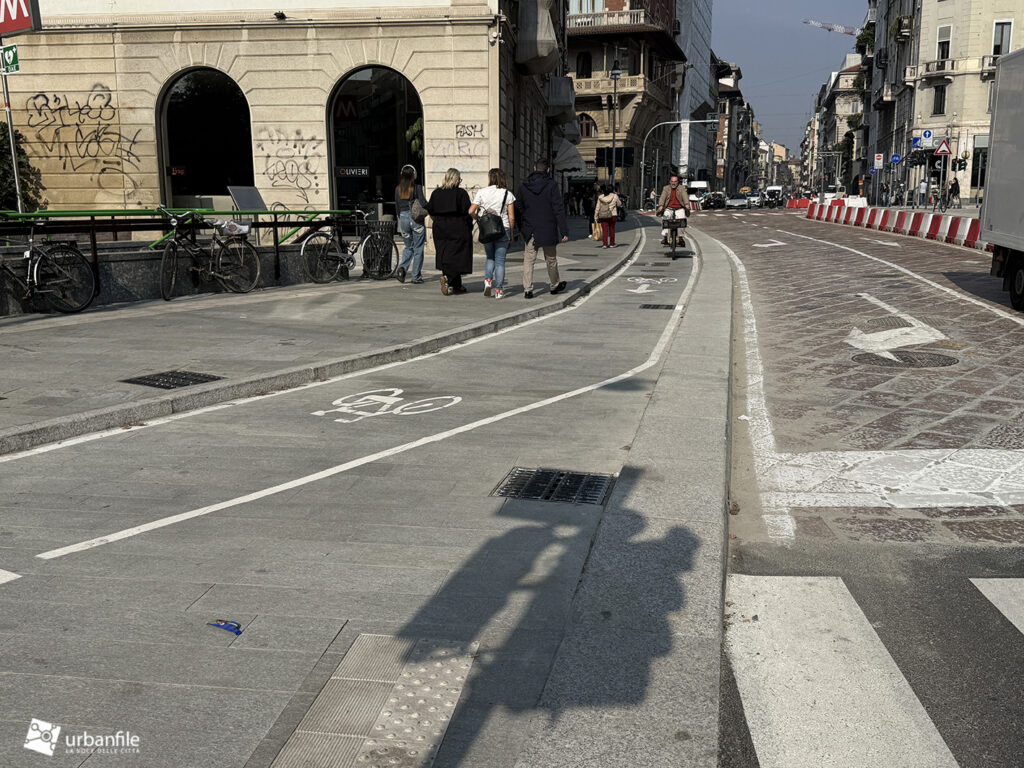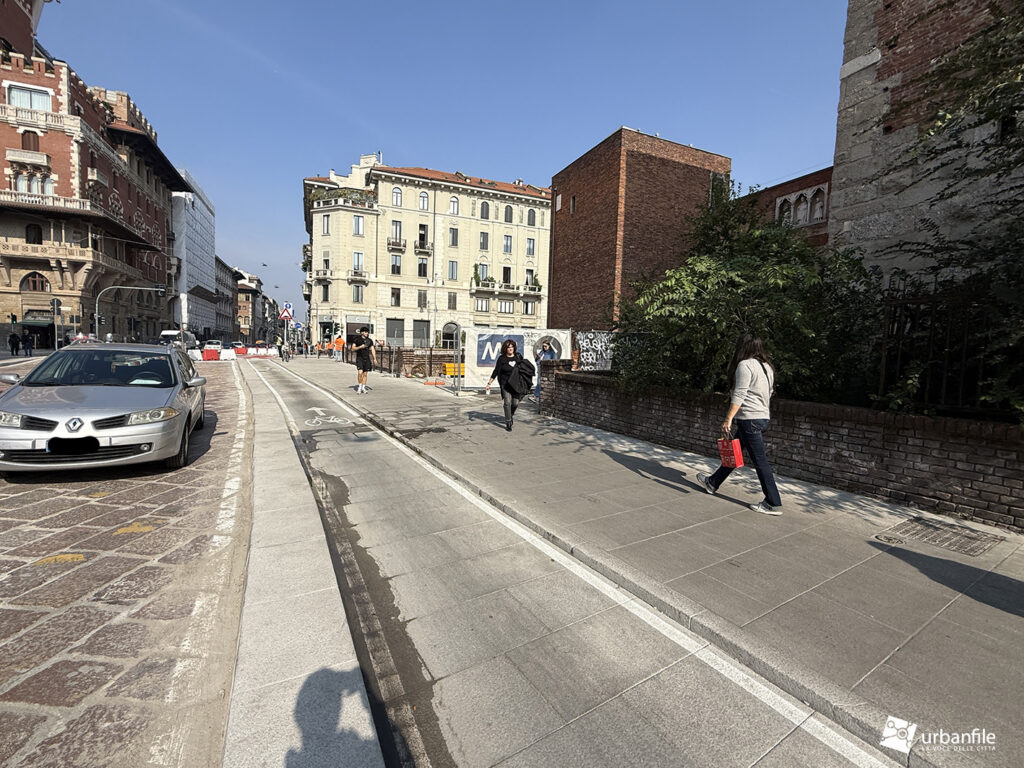 • Per quanto riguarda gli alberi, nel tratto di via San Vittore tra via Carducci e via Lanzone la metro corre a 32 metri di profondità. Perciò l’assenza di alberi in quel punto può essere giustificata solo all’incrocio con via Carducci, dove c’è l’ingresso della M4, ma per quanto riguarda il resto del tratto fino a piazza Sant’Ambrogio, la metro non può essere usata come scusa. Per quanto riguarda via Carducci, invece, gli alberi non potevano essere messi sul lato est per via del collegamento M2-M4, ma sul lato ovest non c’è nulla. Se in quel punto avessero fatto 2 corsie carrabili come in gran parte della Cerchia dei Navigli riqualificata invece che 3, avrebbero avuto spazio per piantare alcuni alberi a ovest di via Carducci e anche allargare un po’ il marciapiede o la ciclabile. Quindi, la metro c’entra poco o nulla, che a vedere la situazione verde a Milano, sembra che abbiamo linee di metro che corrono sotto tutte le strade manco fossimo a Parigi (che ha comunque più alberi di Milano). Secondo me il motivo vero è la sovrintendenza che ha rotto le scatole come per piazza Cordusio, dove alla fine hanno comunque ceduto e hanno messo delle aiuole per piccole piante (lì sì che c’è la metro sotto). Oppure non hanno voluto/potuto sacrificare una corsia carrabile per mettere del verde. Sicuramente quella del verde non è una piccola critica pretestuosa, ma è una questione molto importante in un momento di crisi climatica, con piazze e strade che diventano invivibili d’estate.