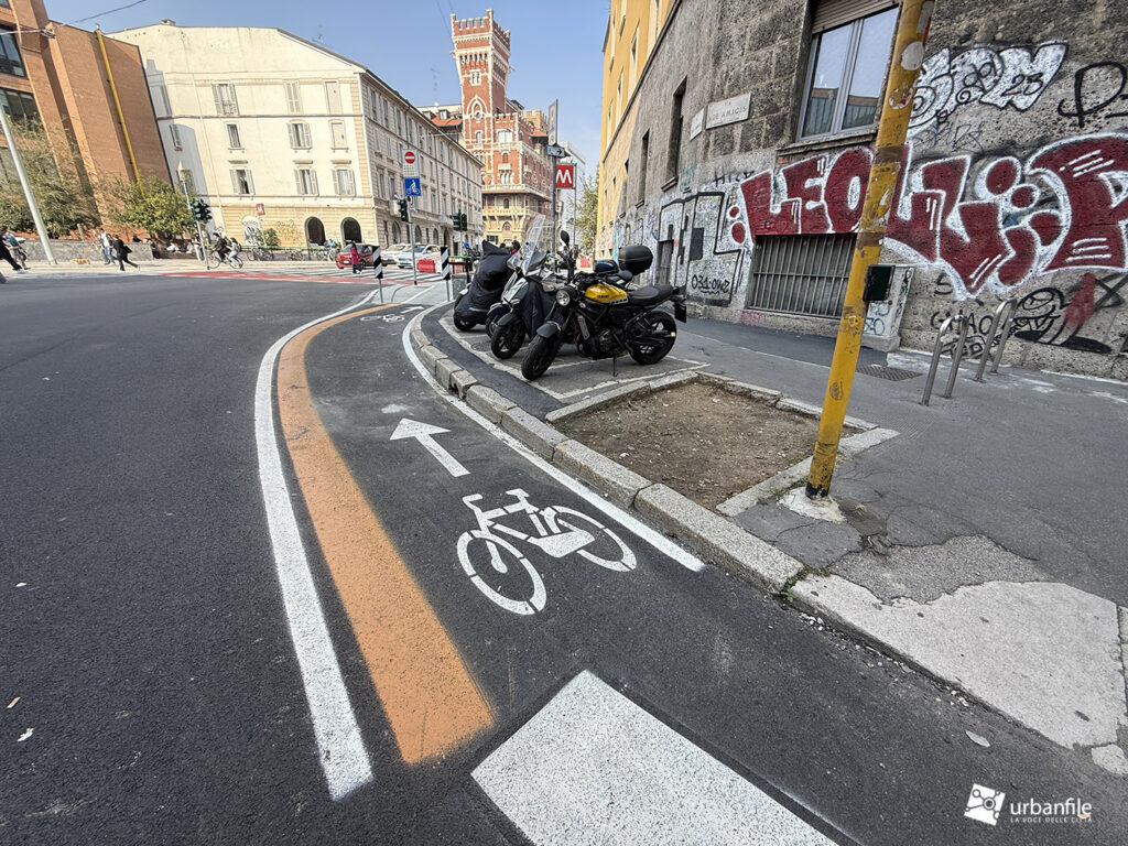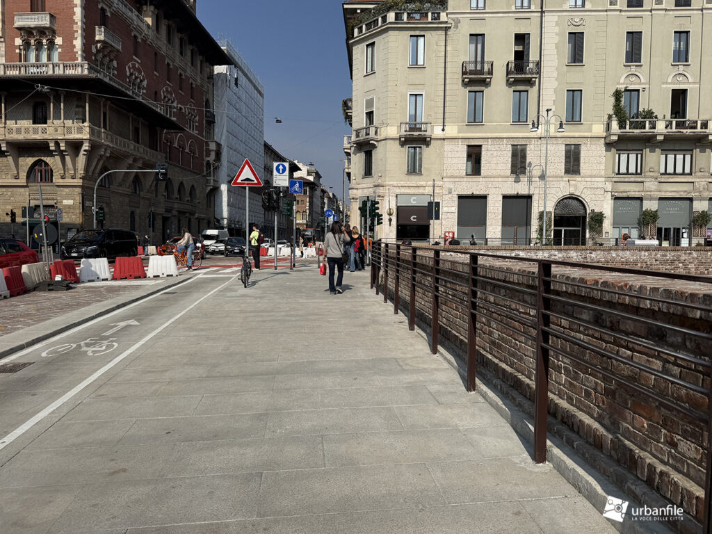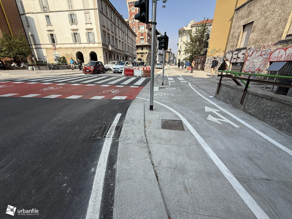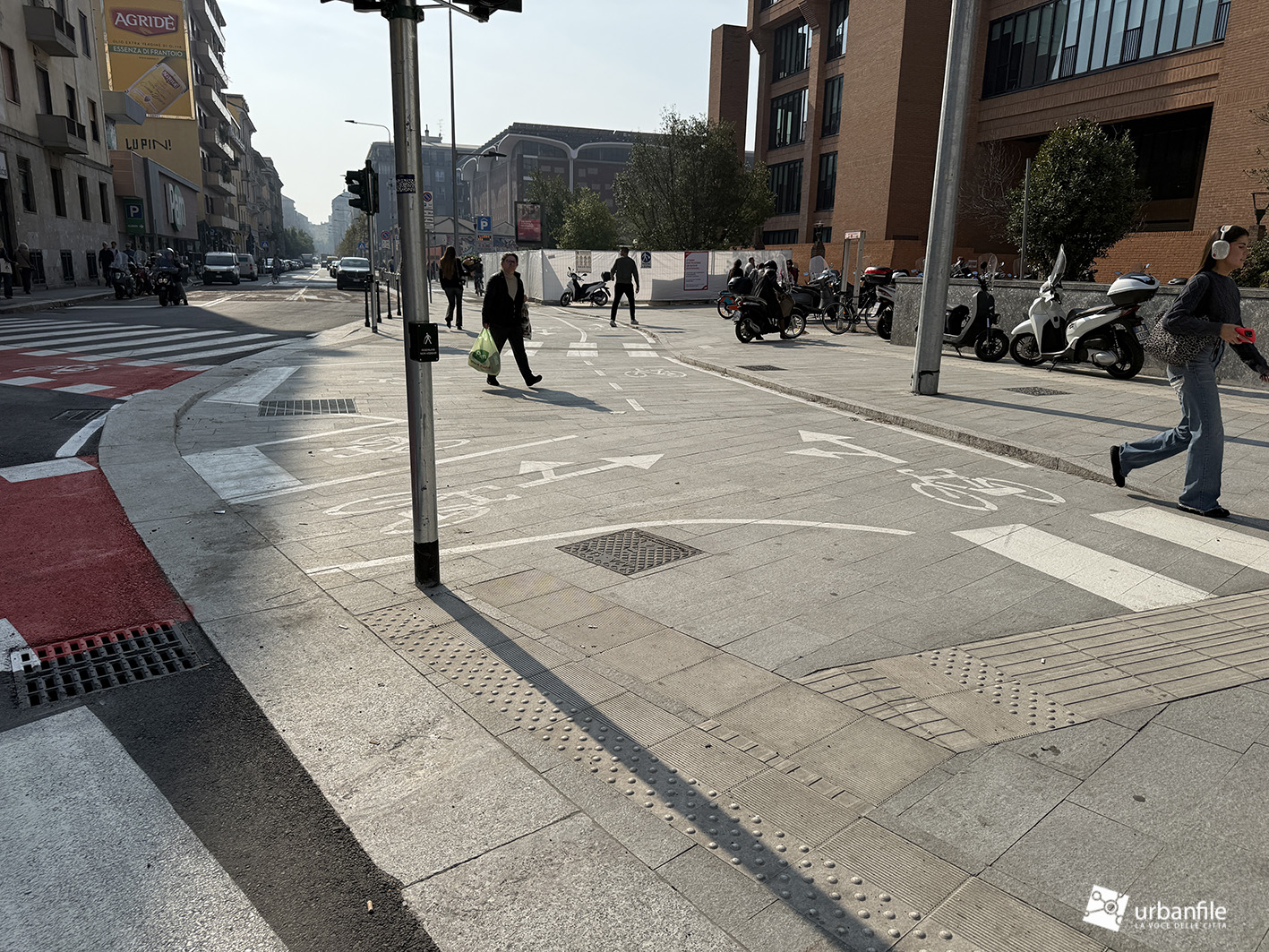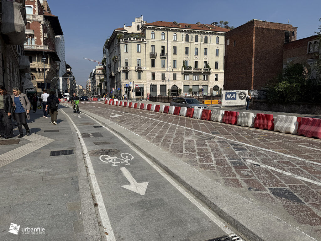 • Per quanto riguarda gli alberi, nel tratto di via San Vittore tra via Carducci e via Lanzone la metro corre a 32 metri di profondità. Perciò l’assenza di alberi in quel punto può essere giustificata solo all’incrocio con via Carducci, dove c’è l’ingresso della M4, ma per quanto riguarda il resto del tratto fino a piazza Sant’Ambrogio, la metro non può essere usata come scusa. Per quanto riguarda via Carducci, invece, gli alberi non potevano essere messi sul lato est per via del collegamento M2-M4, ma sul lato ovest non c’è nulla. Se in quel punto avessero fatto 2 corsie carrabili come in gran parte della Cerchia dei Navigli riqualificata invece che 3, avrebbero avuto spazio per piantare alcuni alberi a ovest di via Carducci e anche allargare un po’ il marciapiede o la ciclabile. Quindi, la metro c’entra poco o nulla, che a vedere la situazione verde a Milano, sembra che abbiamo linee di metro che corrono sotto tutte le strade manco fossimo a Parigi (che ha comunque più alberi di Milano). Secondo me il motivo vero è la sovrintendenza che ha rotto le scatole come per piazza Cordusio, dove alla fine hanno comunque ceduto e hanno messo delle aiuole per piccole piante (lì sì che c’è la metro sotto). Oppure non hanno voluto/potuto sacrificare una corsia carrabile per mettere del verde. Sicuramente quella del verde non è una piccola critica pretestuosa, ma è una questione molto importante in un momento di crisi climatica, con piazze e strade che diventano invivibili d’estate.