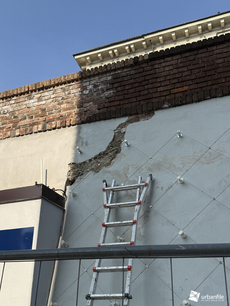Nei giorni scorsi sono state rimosse le piante rampicanti volutamente piantumate, che ormai avevano invaso la parete del fossato. Deduciamo che forse ci sono stati dei “segnali” di caduta d’intonaco e delle crepe sulla parete sistemata da qualche mese, che hanno costretto alla brutale soluzione. DOvrebbero venire ripiantata appena possibile.