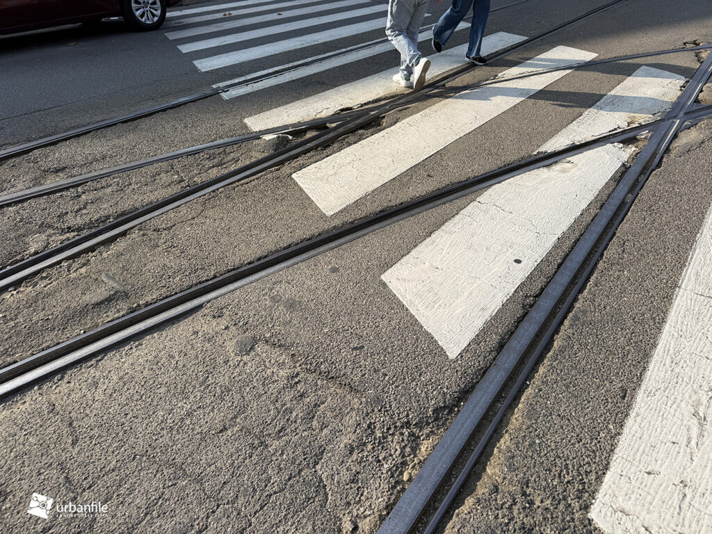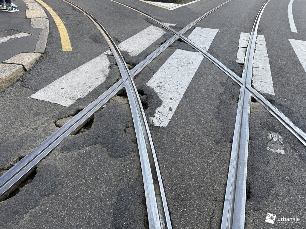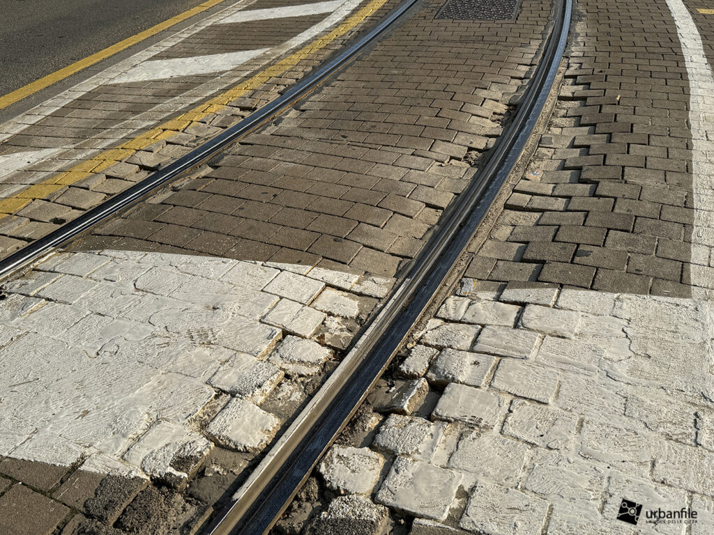 Allo stesso modo, va segnalata con urgenza la pericolosità dei vicini attraversamenti pedonali lungo le rotaie del tram, dove le mattonelle sollevate rendono il passaggio rischioso e potenzialmente causa di cadute. In particolare: