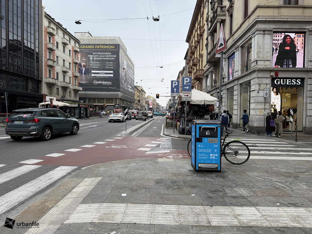 Proseguiamo verso Loreto, dove da via Francesco Redi e via Ruggero Boscovich raggiungiamo piazza Lima. Il tratto di Corso Buenos Aires sul lato dispari è stato completato, sia marciapiede, sia ciclabile e aiuole. In questo tratto il lato pari del corso non è stato ancora toccato dal cantiere, in pratica è rimasto invariato dal nostro ultimo sopralluogo.