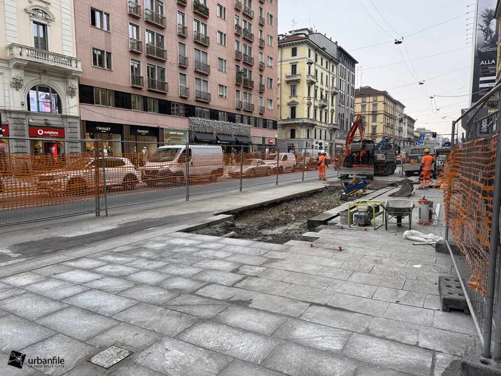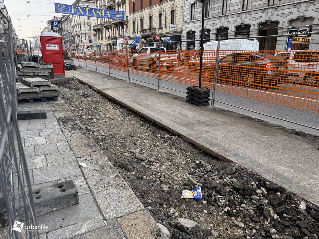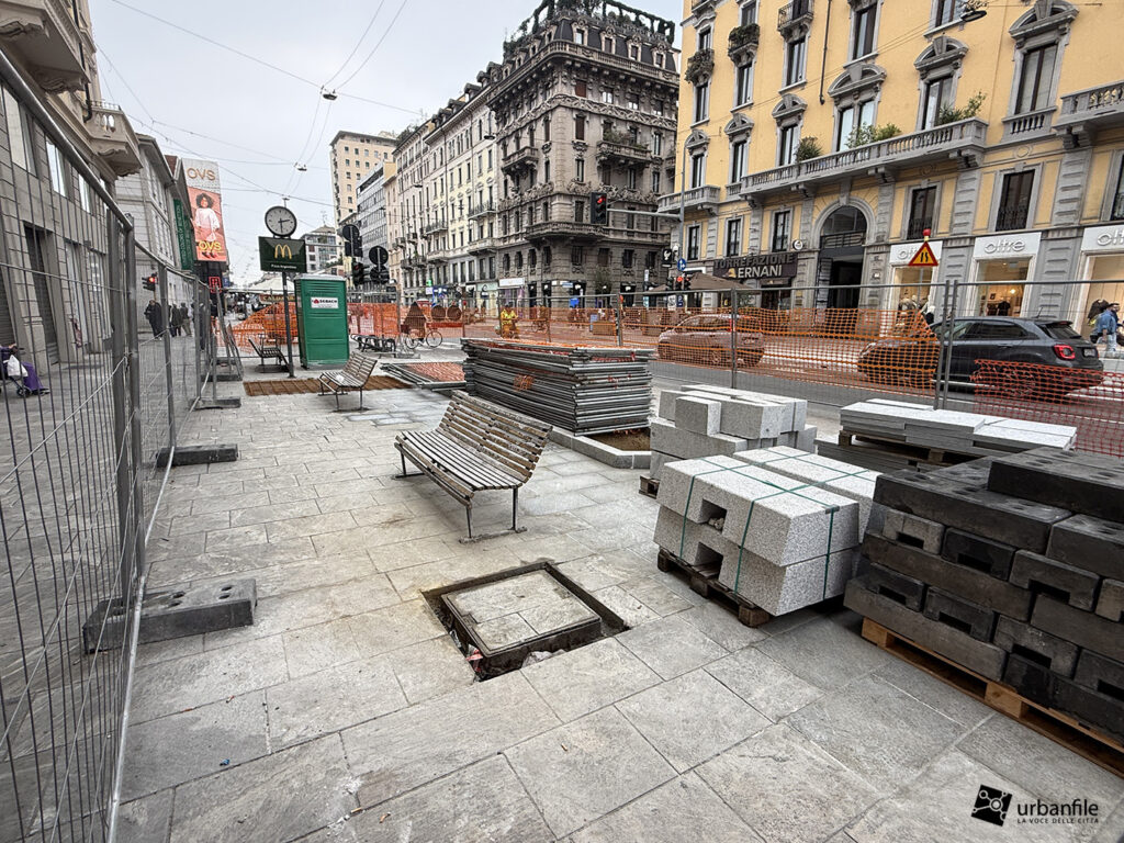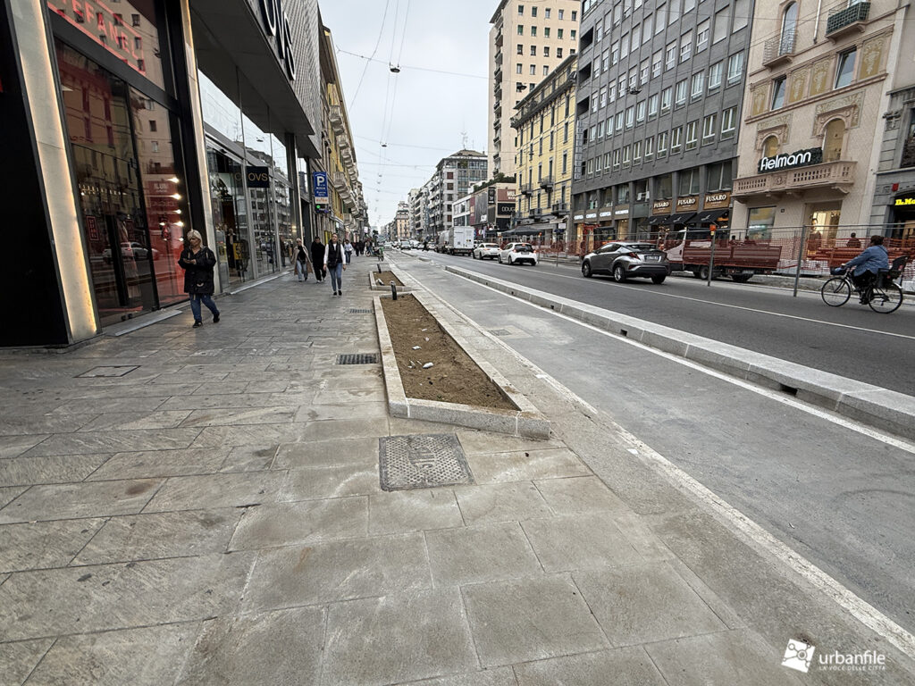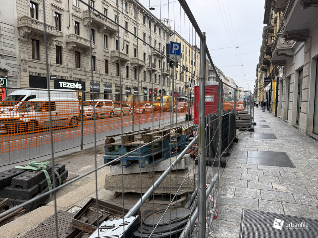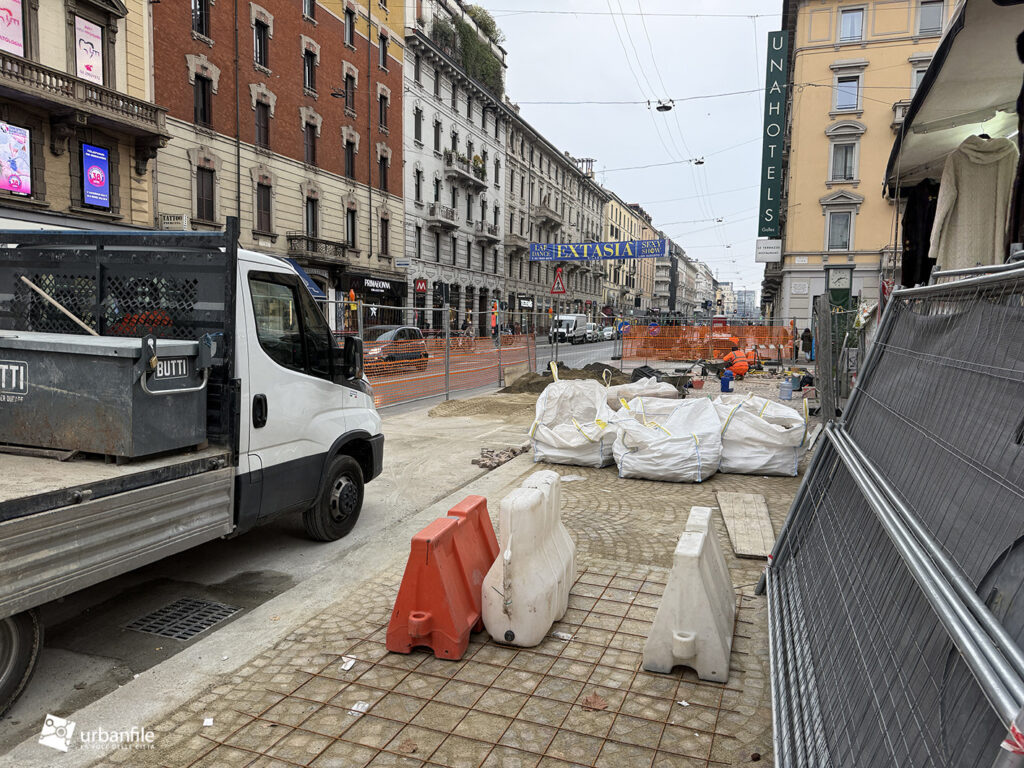 Dall’incrocio delle vie San Gregorio/Omboni alle vie Boscovich/Redi ora il cantiere riguarda il lato pari. Quello dispari, dove si trova l’OVS per intenderci, è stato completato. All’appello manca anche il tratto davanti al Palazzo Argentina (Muji).