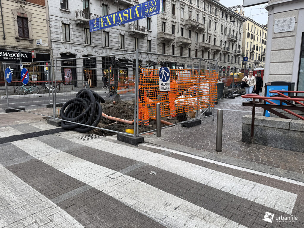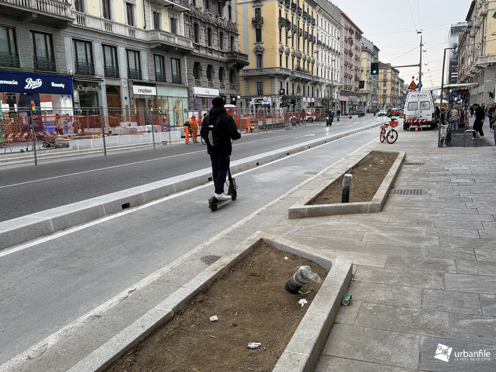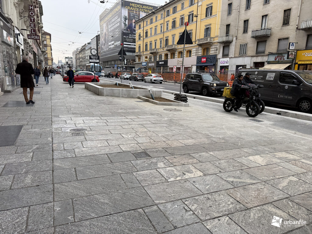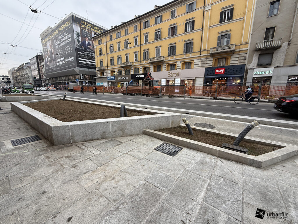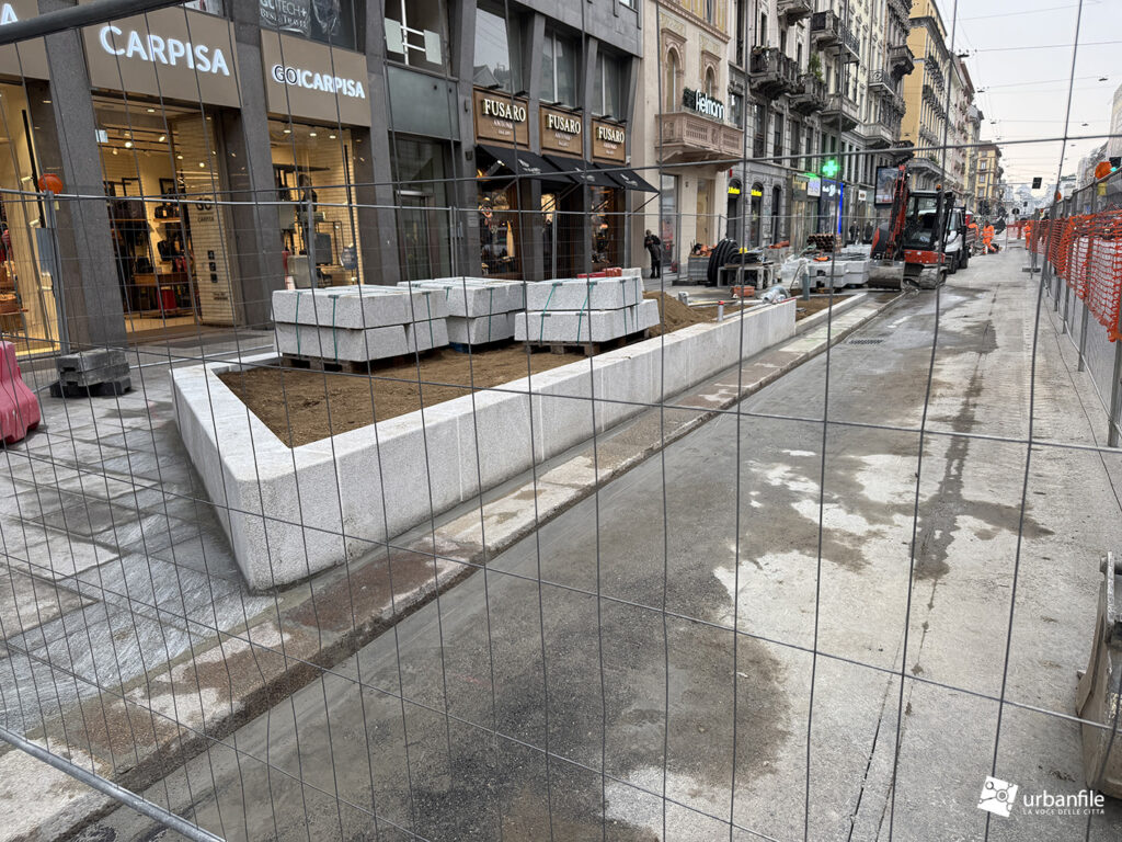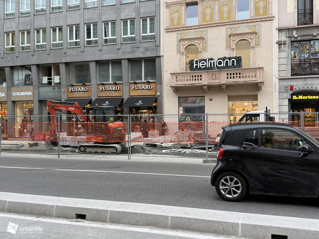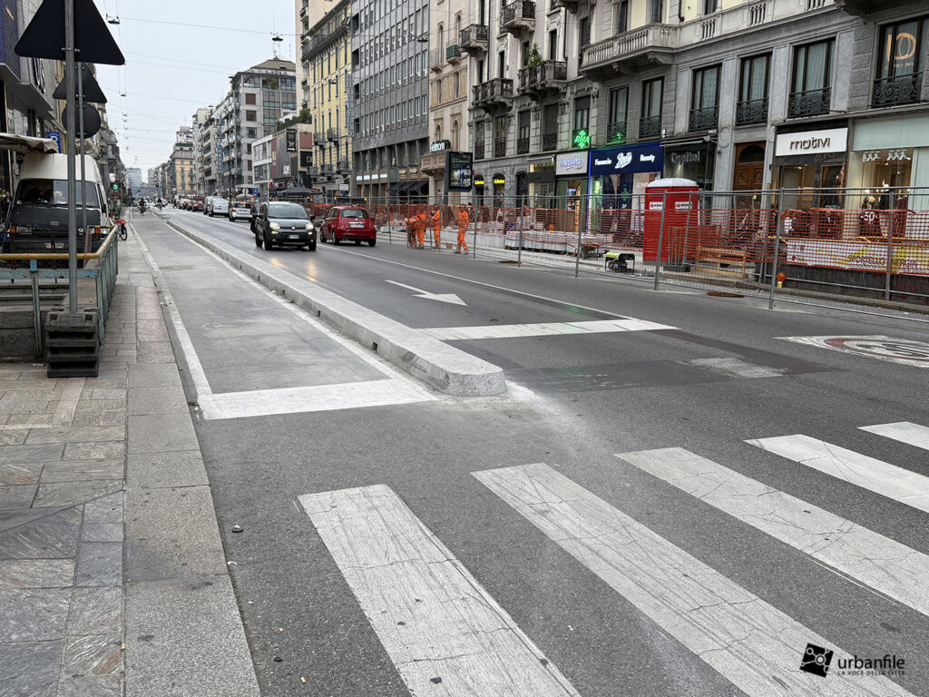 Dall’incrocio delle vie San Gregorio/Omboni alle vie Boscovich/Redi ora il cantiere riguarda il lato pari. Quello dispari, dove si trova l’OVS per intenderci, è stato completato. All’appello manca anche il tratto davanti al Palazzo Argentina (Muji).