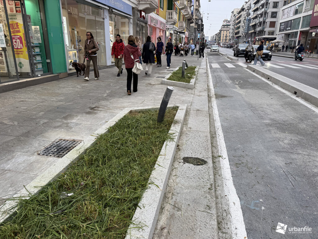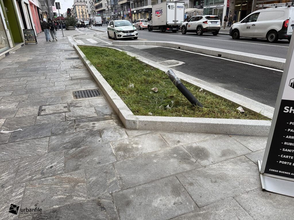 Così partiamo dall’incrocio di Corso Buenos Aires con viale Tunisia e viale Regina Giovanna e risaliamo sino alle vie San Gregorio/Omboni dove è stato completato l’intervento sul lato pari. Mancano solo le piante nelle vasche.