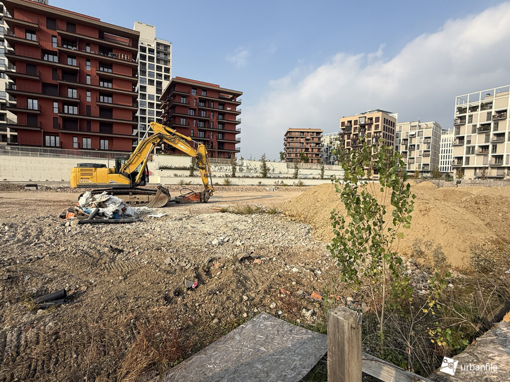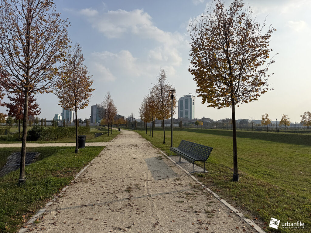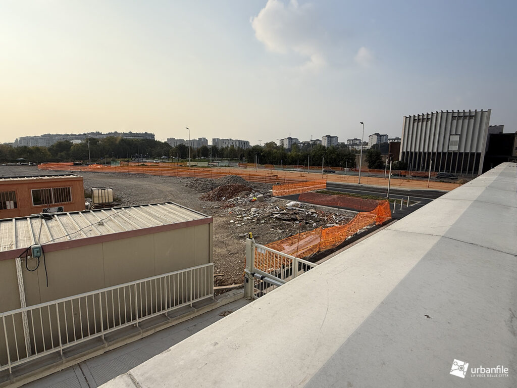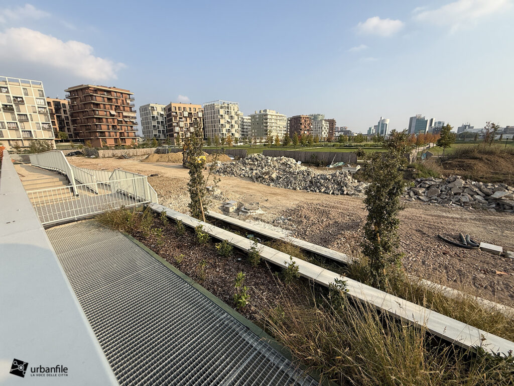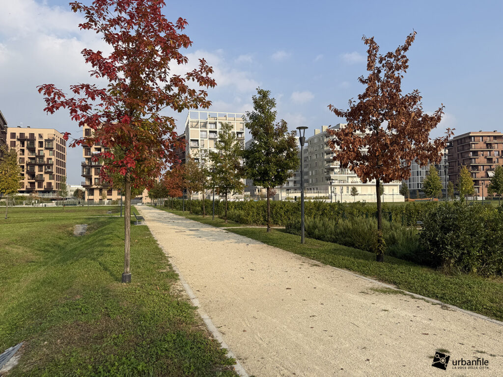 Ottobre 2025. Mentre la porzione di parco aperto ai cittadini si tinge di colori caldi autunnali, il cantiere per il completamento del nuovo parco prosegue e inizia a delinearsi anche verso via Calchi Taeggi. Siamo nel nuovo quaritere di SeiMilano a Sella Nuova (m1 Bisceglie).