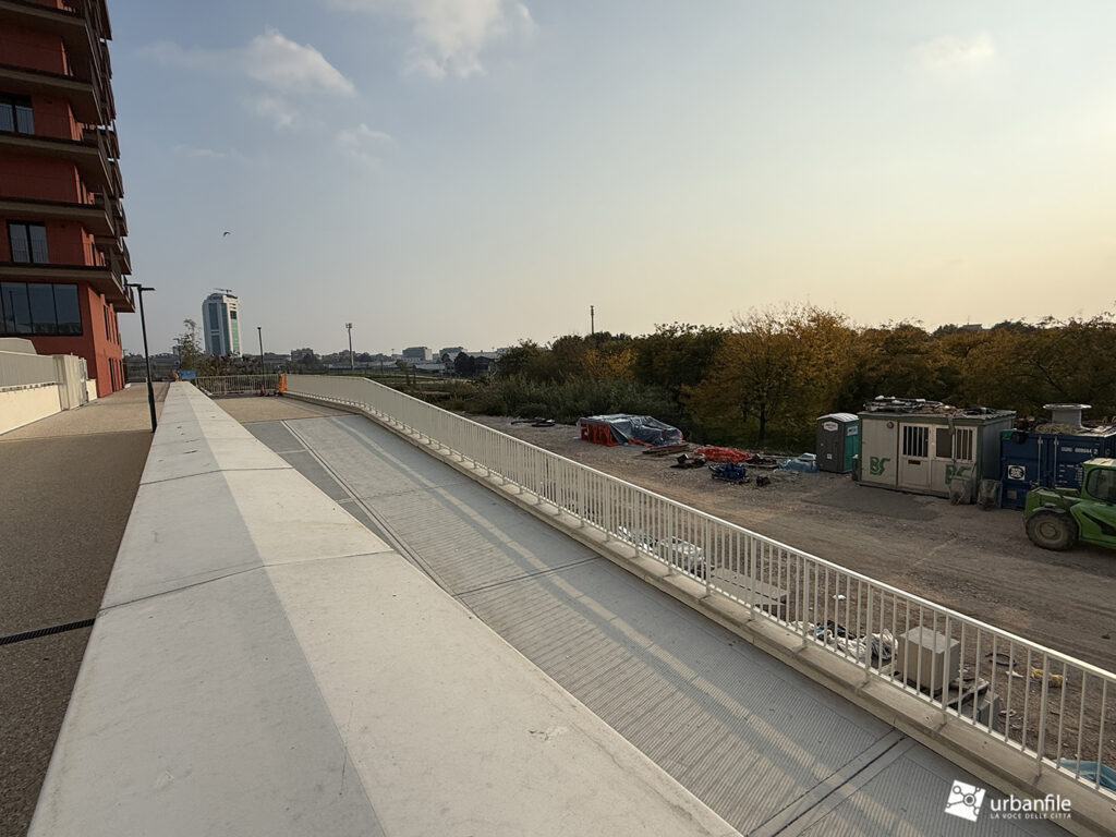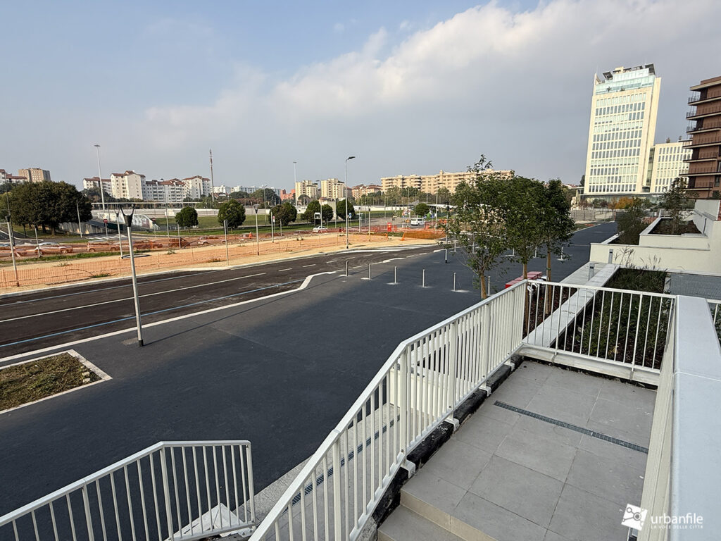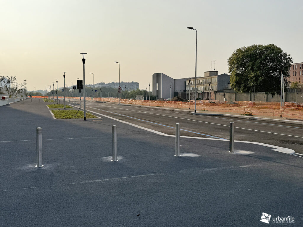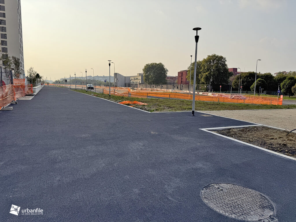 Anche lo stradone posto tra il podio delle residenze e via Calchi Taeggi è stato portato a compimento, o quasi. Forse avremmo gradito un po’ meno asfalto e più verde e alberature, ma meglio attendere la fine del cantiere.