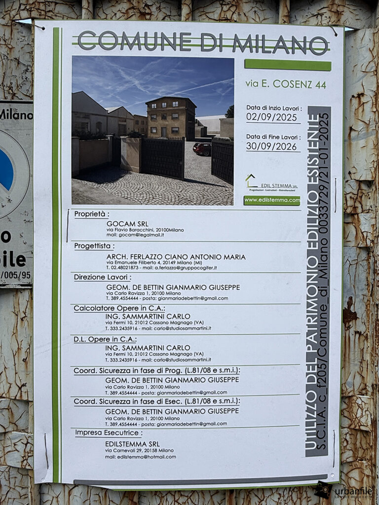 Milano – Bovisa > via Enrico Cosenz 44 > COSENZ 44 (nella mappa Urbanfile codice: BOV14) (uffici e laboratori) (riqualificazione)