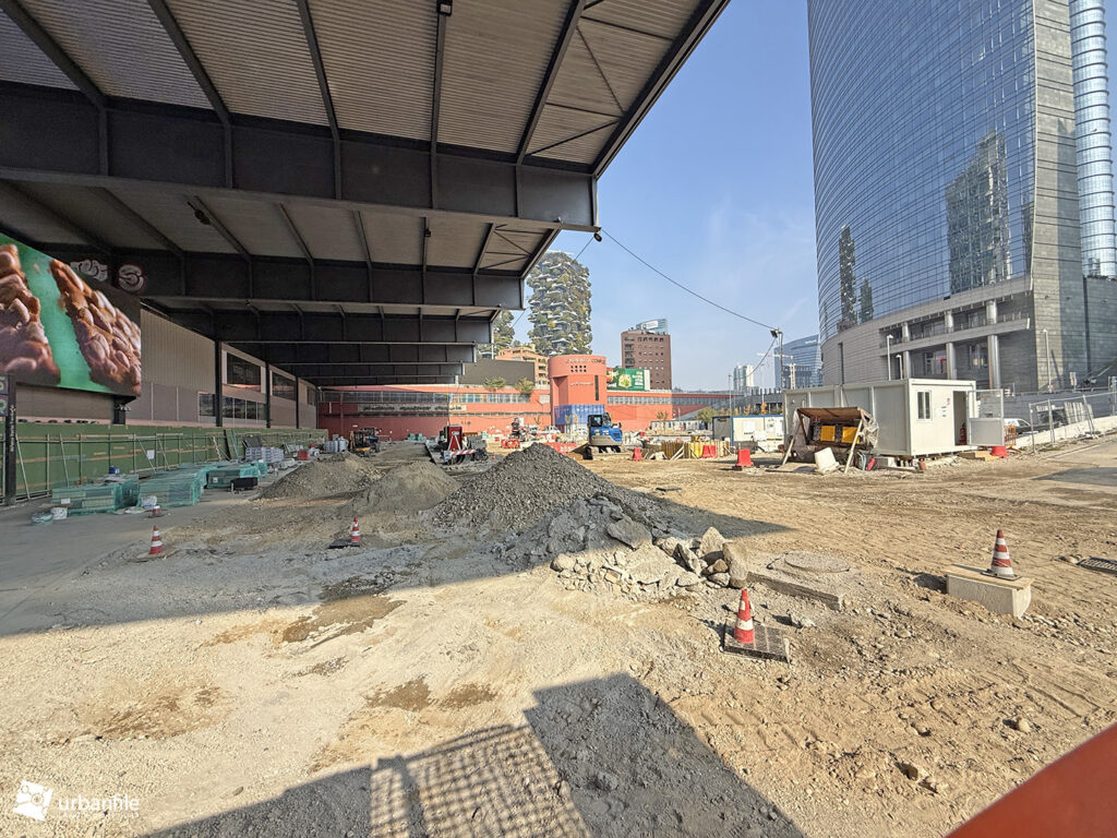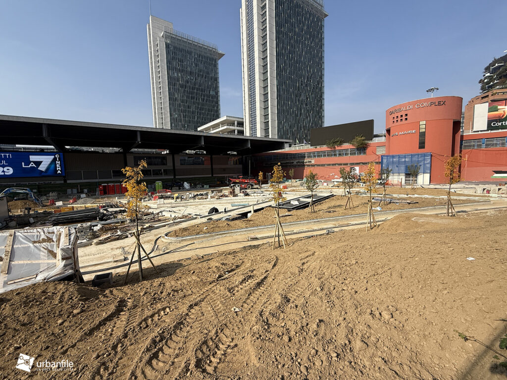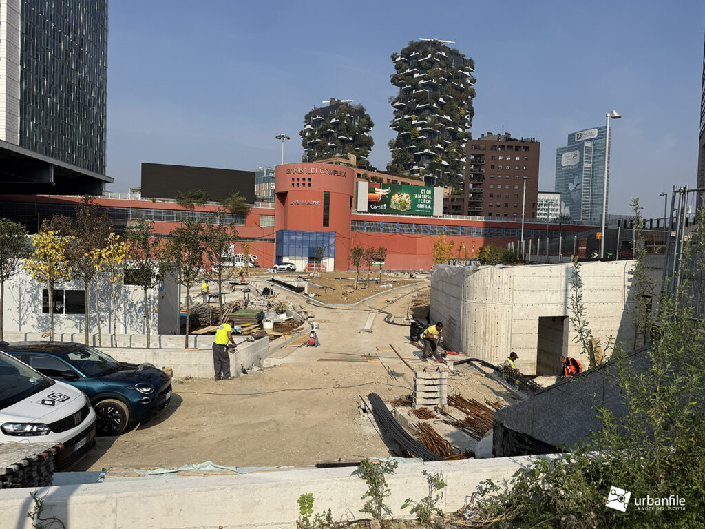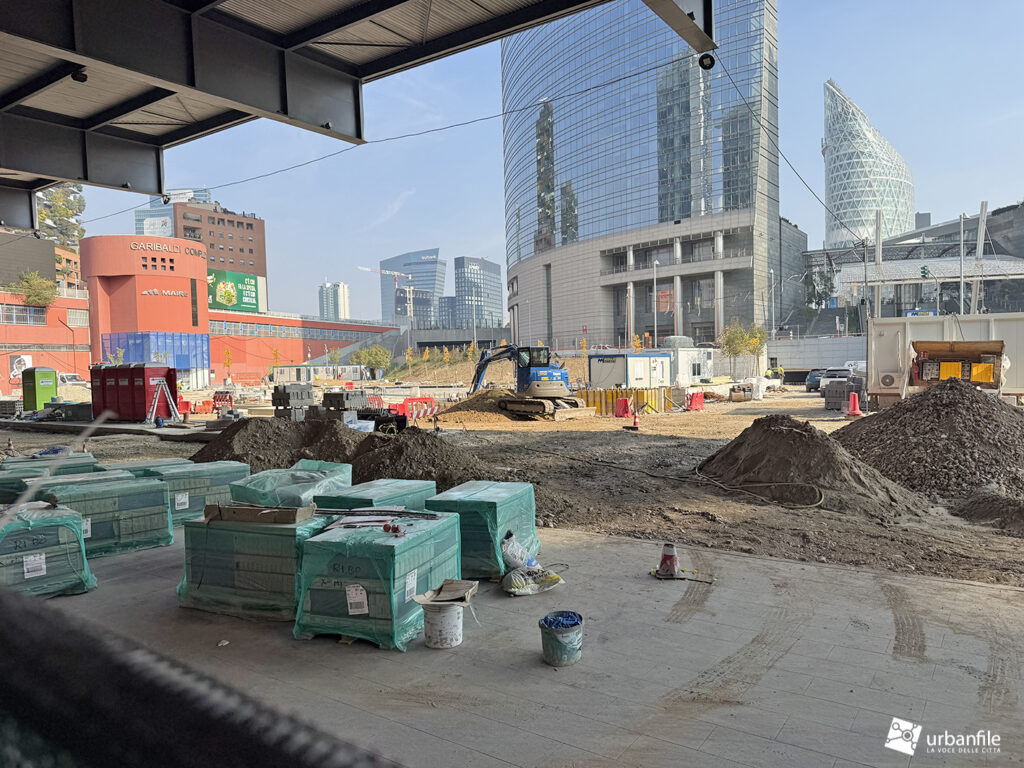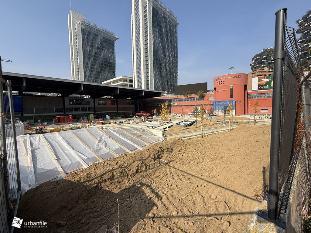 Ottobre 2025. Aggiornamento dal cantiere per la riqualificazione di piazza Sigmund Freud, lo spazio urbano antistante la stazione di Milano Porta Garibaldi, una delle piazze più brutte della città da sempre, anche perché era un semplice parcheggio.