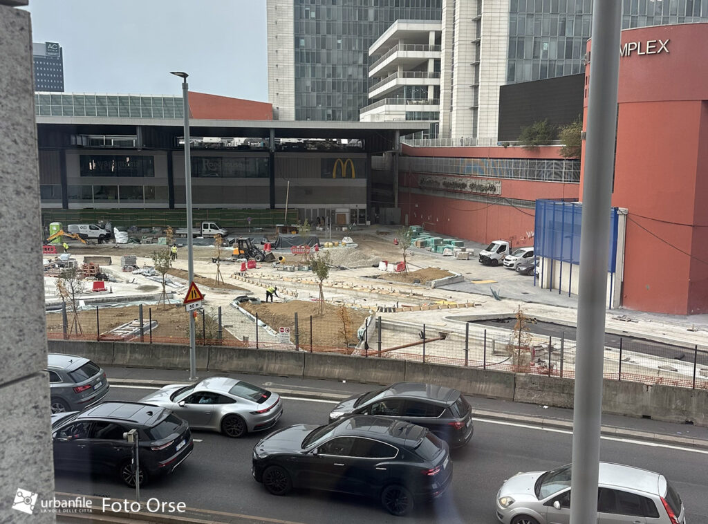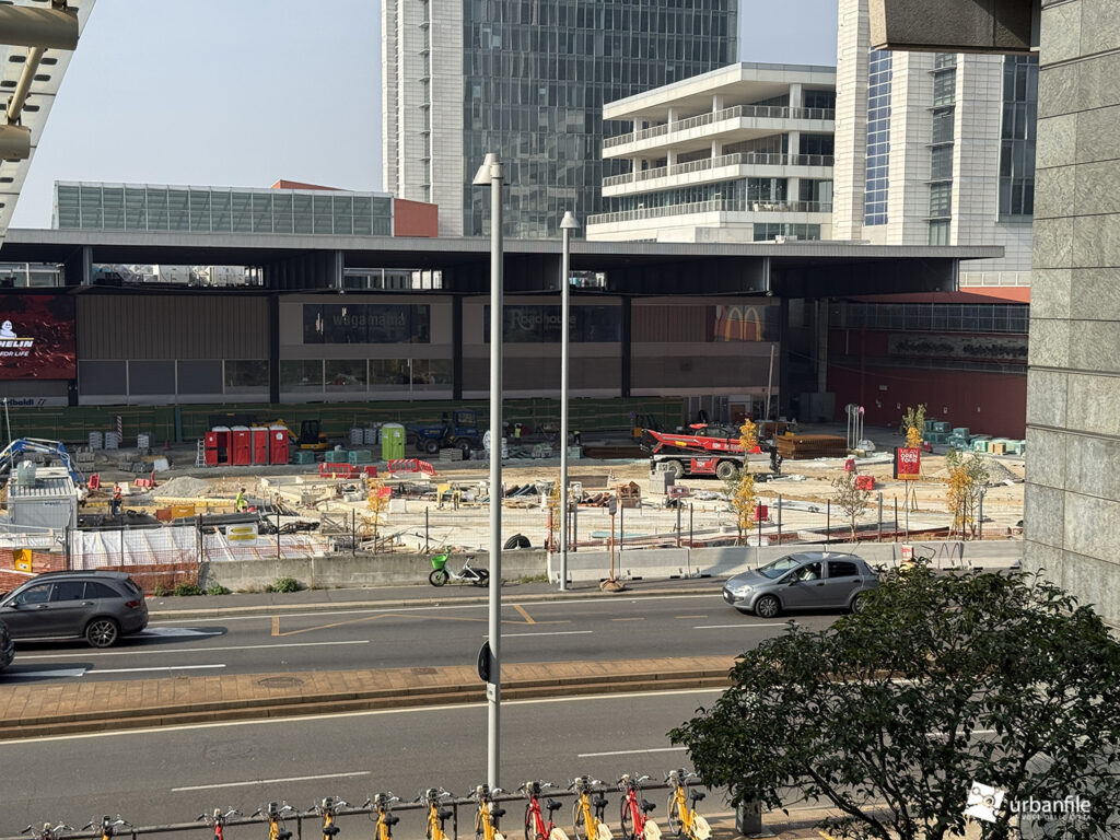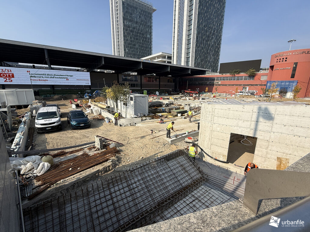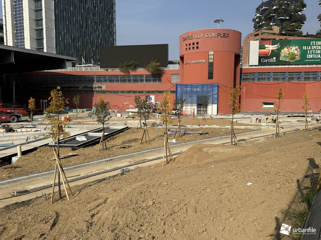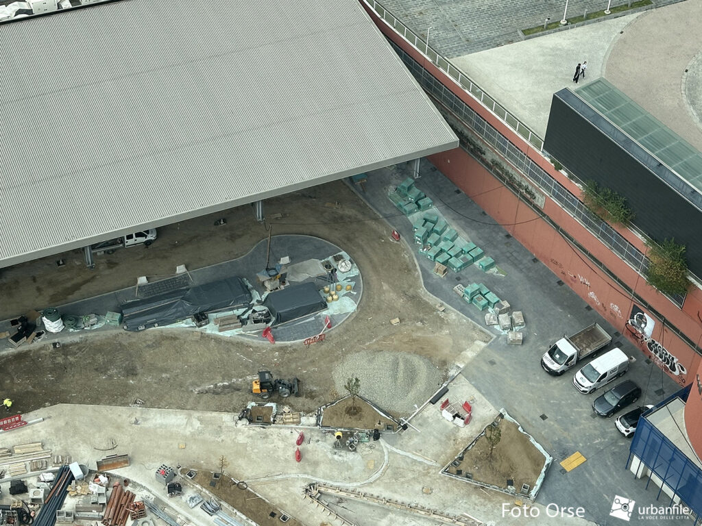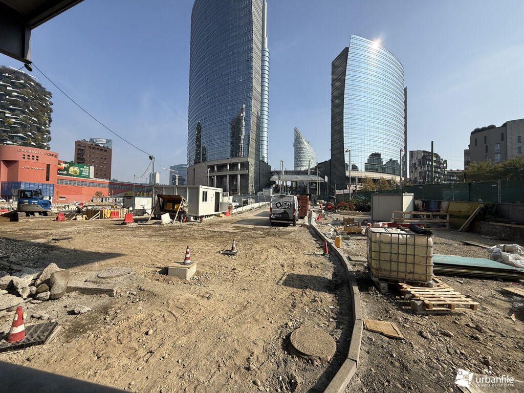 Ottobre 2025. Aggiornamento dal cantiere per la riqualificazione di piazza Sigmund Freud, lo spazio urbano antistante la stazione di Milano Porta Garibaldi, una delle piazze più brutte della città da sempre, anche perché era un semplice parcheggio.