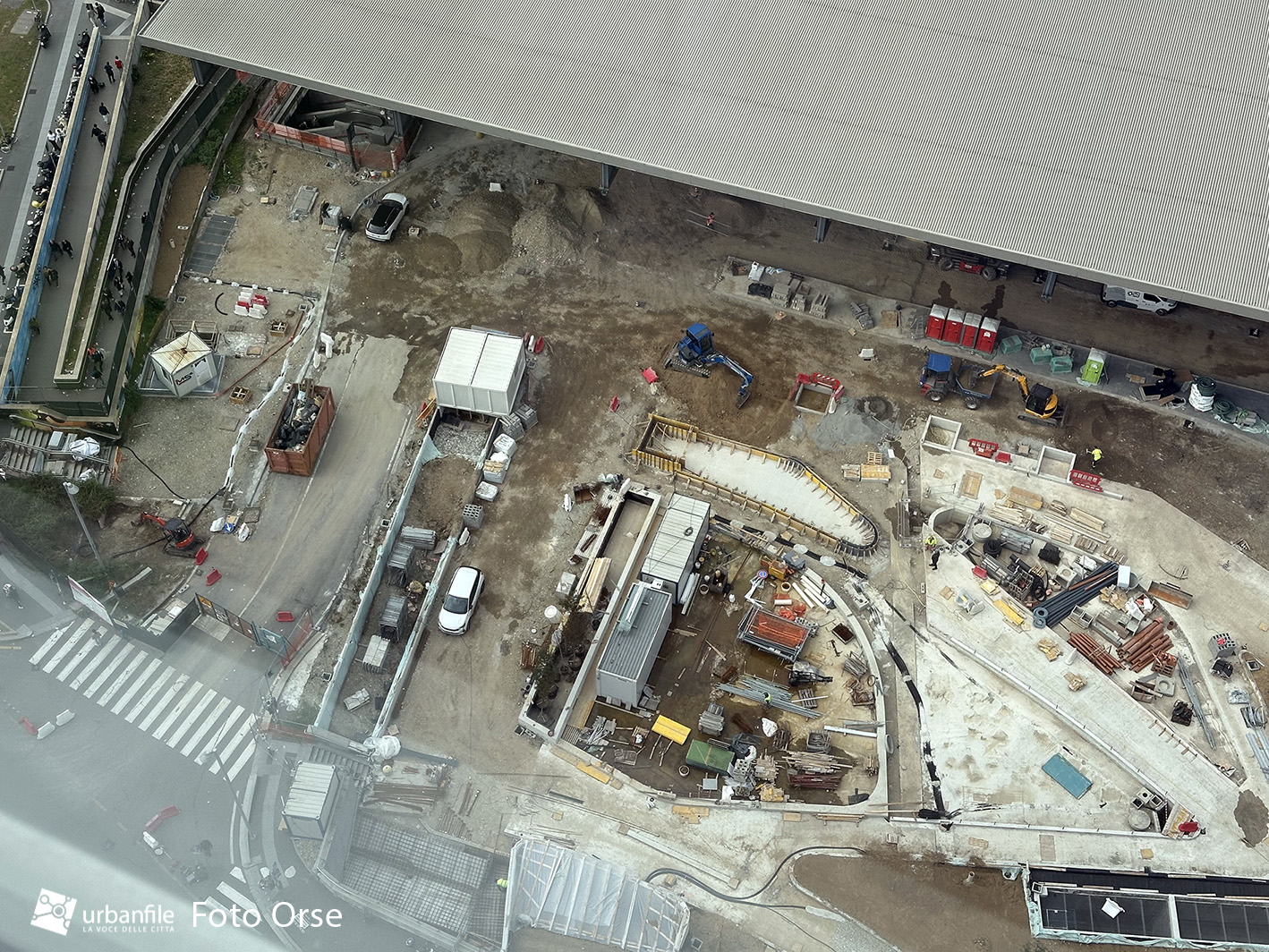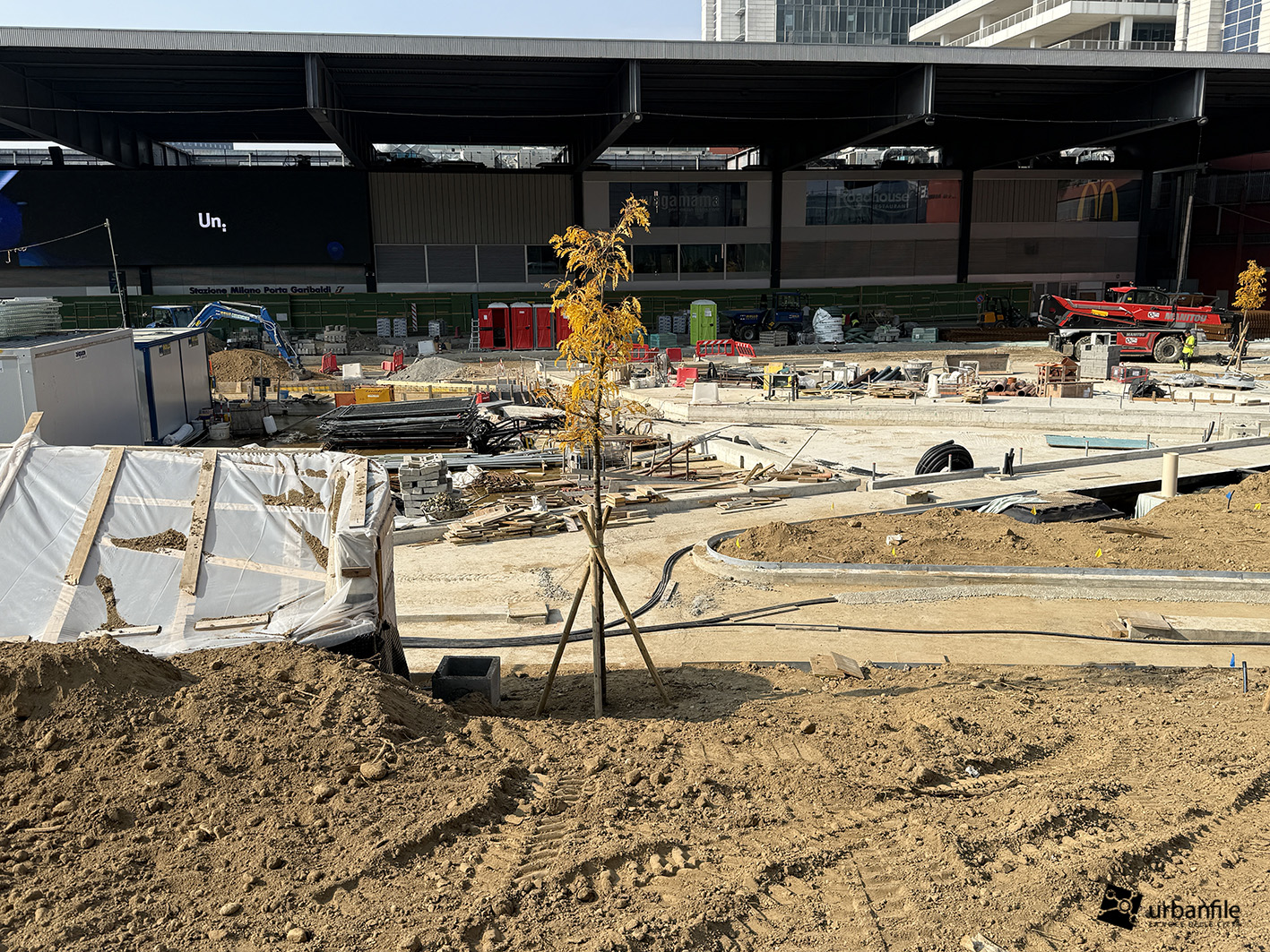 Ottobre 2025. Aggiornamento dal cantiere per la riqualificazione di piazza Sigmund Freud, lo spazio urbano antistante la stazione di Milano Porta Garibaldi, una delle piazze più brutte della città da sempre, anche perché era un semplice parcheggio.