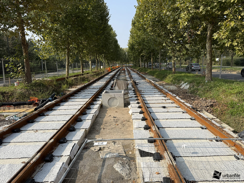 I binari, che già si possono vedere, sono posati su una platea di calcestruzzo e i tratti vicino alle abitazioni saranno dotati di un materassino antivibrazioni.