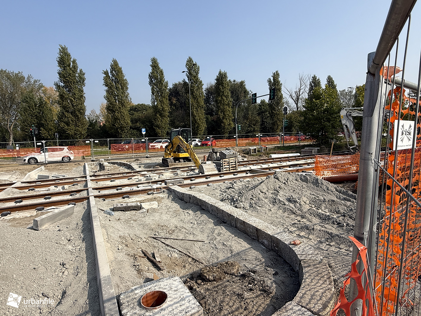Ottobre 2025. Aggiornamento fotografico dal cantiere che riguarda il tratto compreso lungo via Santa Monica, via Racconigi e via Majorana tra Pratocentenaro e Niguarda, dove, dall’inverno 2024 sono partiti i lavori preparatori alla realizzazione della nuova Metrotranvia Interperiferica Nord (alias la linea tranviaria 7), un tratto di circa 1,7 km. L’ultimo aggiornamento è stato quello di agosto 2025.