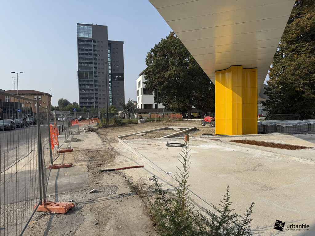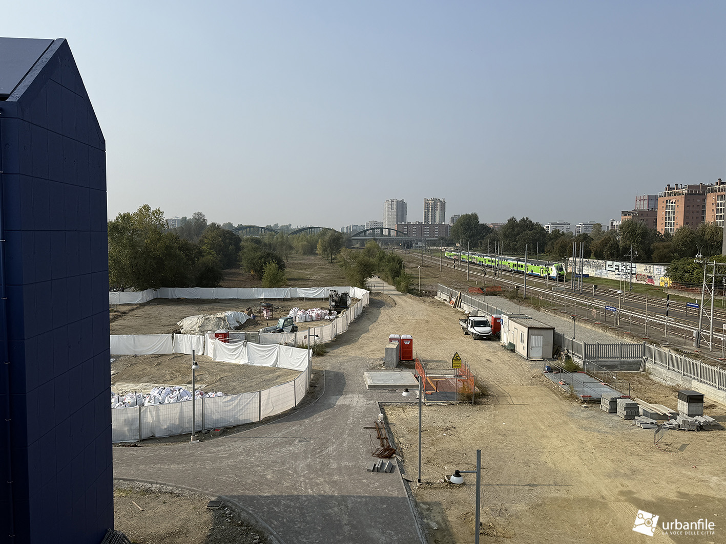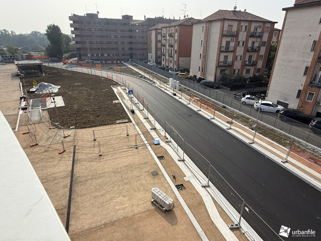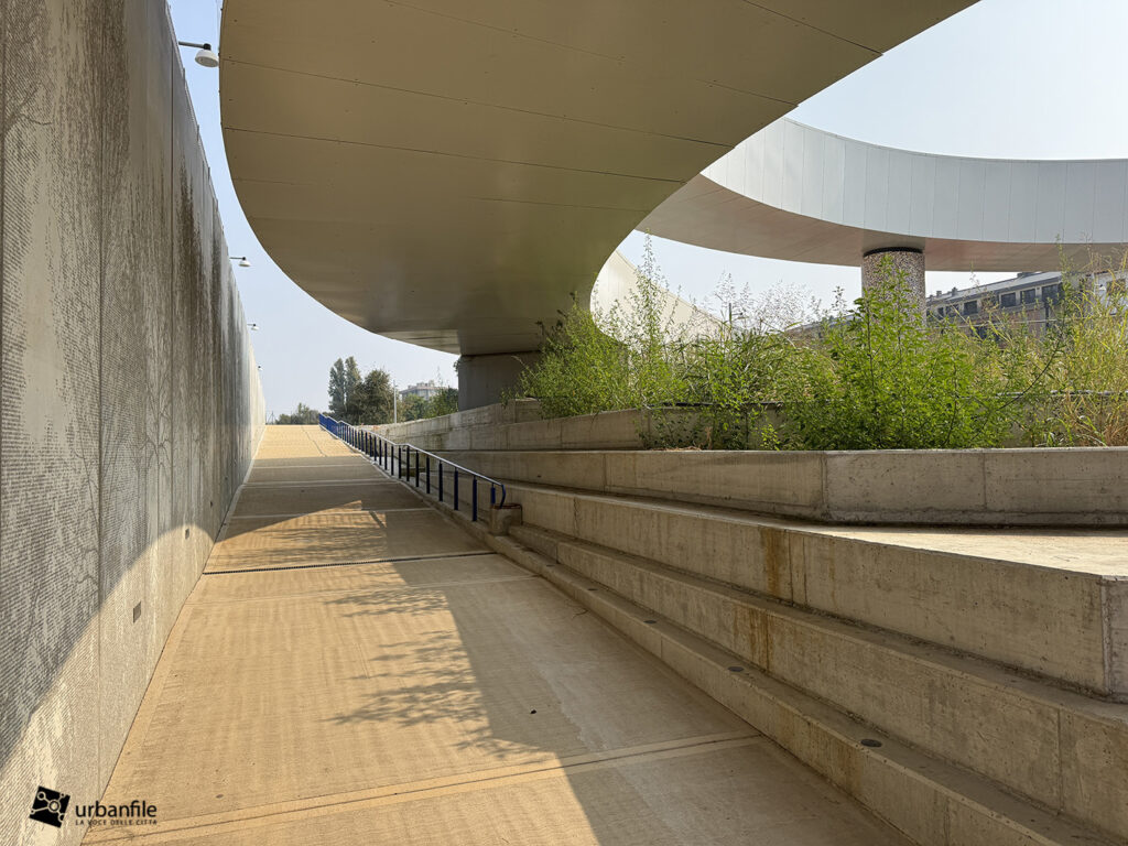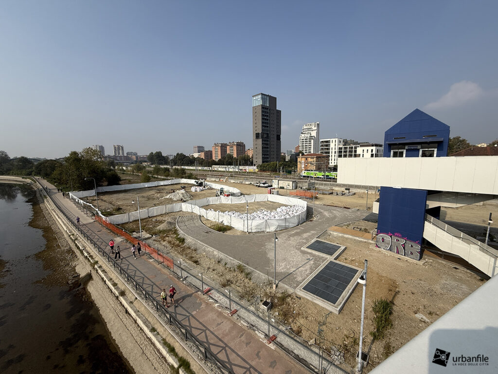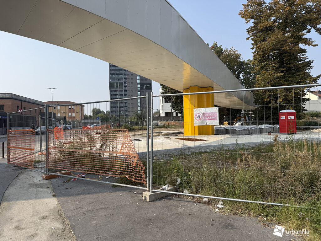 Vi portiamo alla scoperta del cantiere partendo da piazza Tirana, salendo sulla passerella dal lato del naviglio Grande e poi siamo ridiscesi sul versante di Ronchetto. Qui il piazzale nuovo sta prendendo forma e finalmente si possono vedere le aree che saranno a verde.