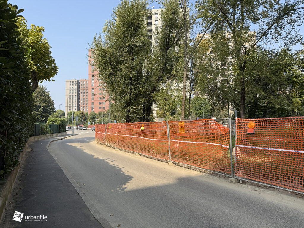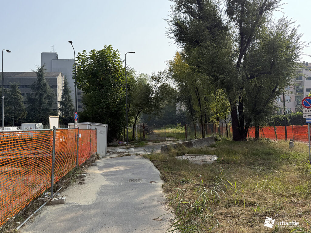 Spostandoci nell’area del quartiere Ca’ Granda, troviamo via Michele De Angelis, una strada “tranciata” e incompleta da sempre. All’altezza dell’incrocio con via Angelo De Gasperis e via Val Cismon, la via non è mai stata collegata a via Giovanni Suzzani, restando per decenni una terra di nessuno, progressivamente trasformata in un’area degradata e incolta. Questa situazione di abbandono è il risultato, come spesso accade, di cavilli burocratici irrisolti o lunghi. Sotto la via scorre il fiume Seveso, intubato tra gli anni Sessanta e Settanta (nel 1965 era ancora visibile come ruscello). L’area era di proprietà del Demanio statale fino al 2017, quando il Comune di Milano la acquisì a titolo gratuito grazie a una legge del governo Renzi. Tuttavia, la sua gestione è rimasta incerta per lungo tempo.