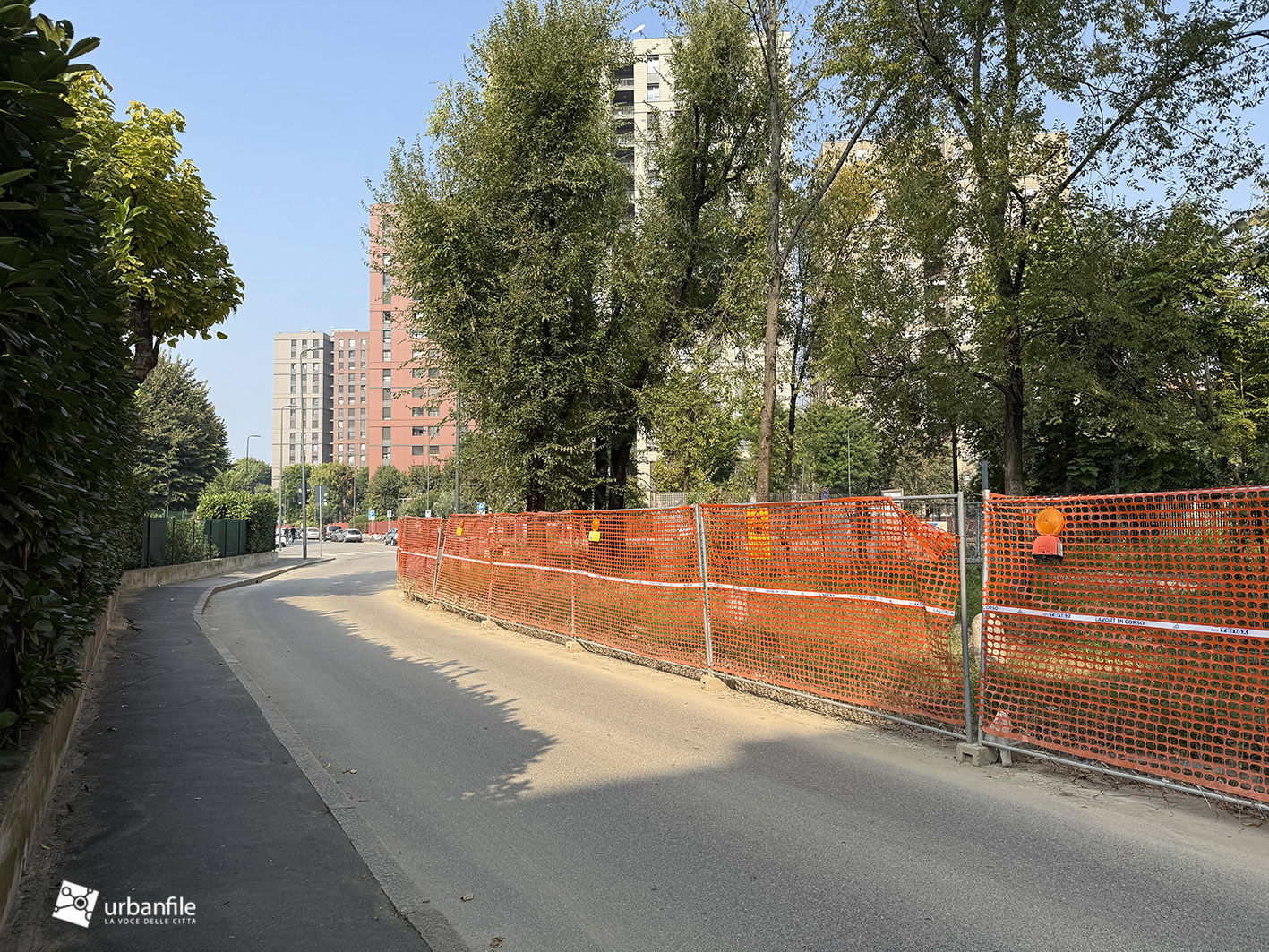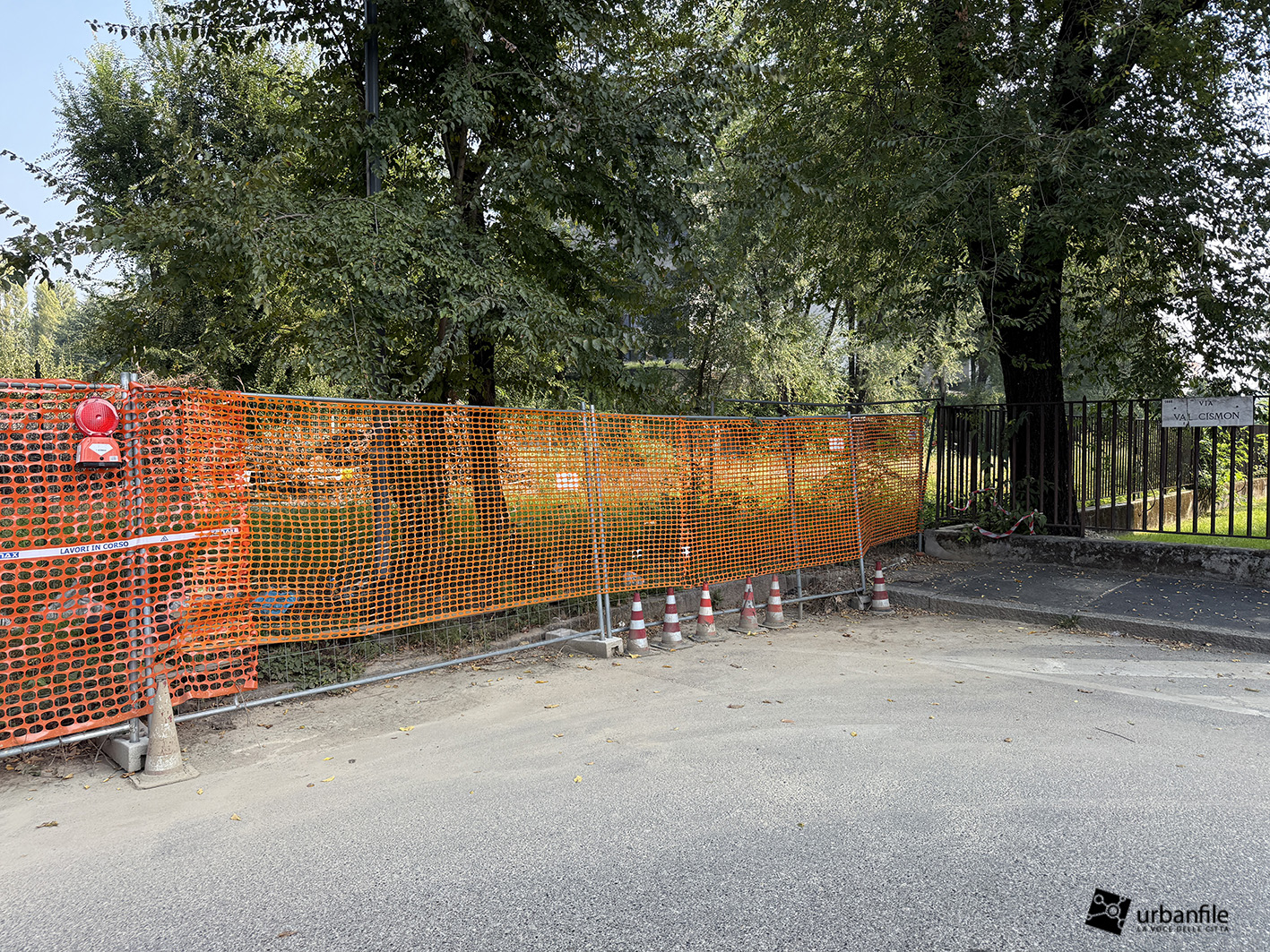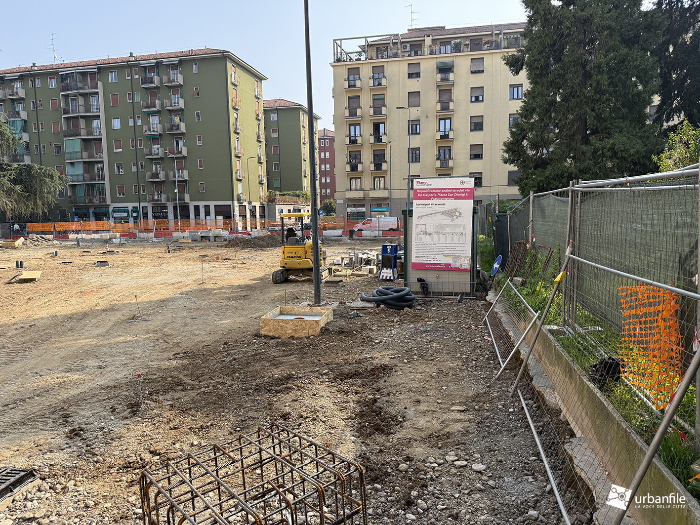 Ottobre 2025. Un aggiornamento dalla piazza antistante la graziosa chiesa di San Dionigi in Pratocentenaro e da via De Angelis. Da giugno sono in corso i lavori di riqualificazione di due aree situate a Pratocentenaro, l’antico borgo e frazione di Niguarda oggi scomparso, ma ancora ricordato nei nomi di alcuni luoghi della zona.