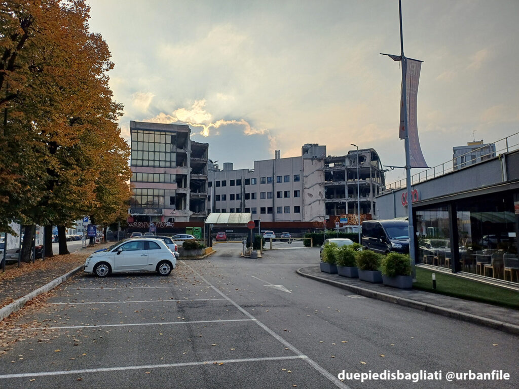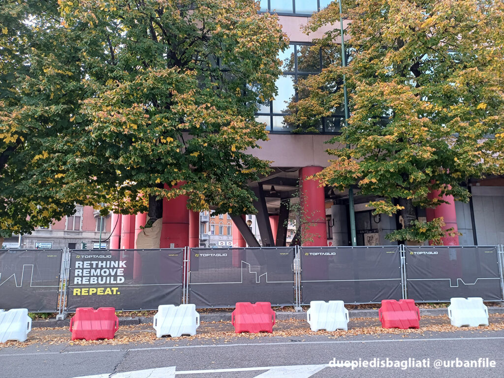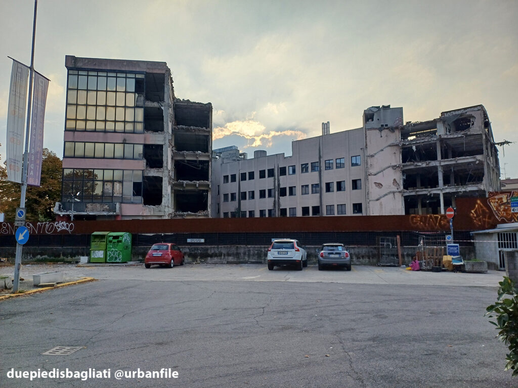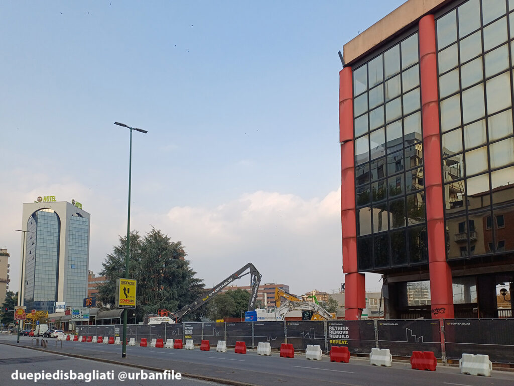 Ottobre 2025. Dopo un decennio di abbandono, l’edificio “scarlatto” che accoglie chi entra a Sesto San Giovanni da Milano, sito all’angolo tra via Ercole Marelli e Viale Italia si appresta a scomparire. Infatti da qualche settimana sono cominciati i lavori di demolizione dello stabile realizzato negli anni Ottanta per gli uffici della Magneti Marelli.