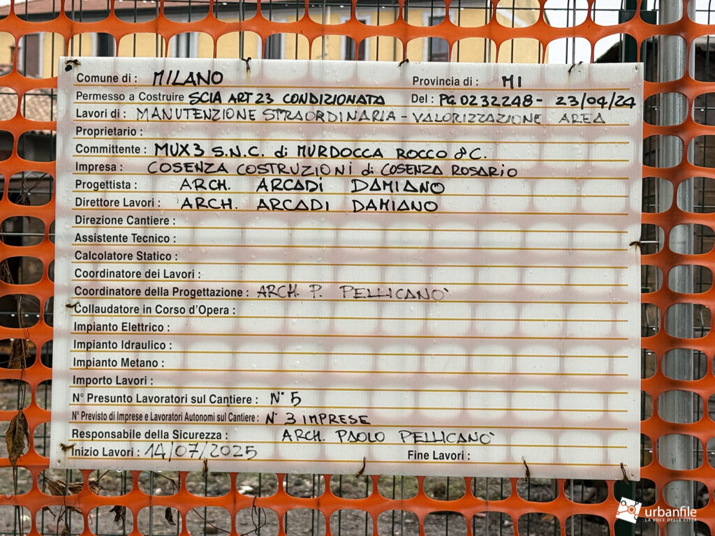 L’area, di proprietà del Comune di Milano, verrà affidata in concessione per 30 anni alla società MUX3 S.N.C., titolare della “Trattoria La Fornasetta” trattoria storica della città di Milano, che finanzierà la pulizia e la riqualificazione dell’area.