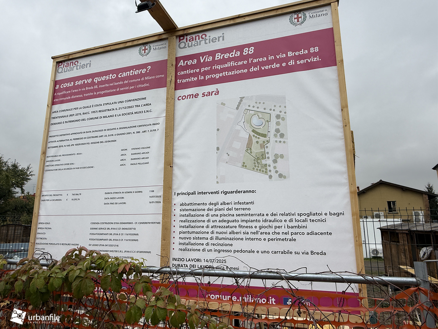 Sul retro, verso Precotto, si trova da sempre un terreno in abbandono di proprietà comunale. In quest’area sta prendendo forma L’Oasi La Fornasetta, un nuovo spazio verde con una piscina.