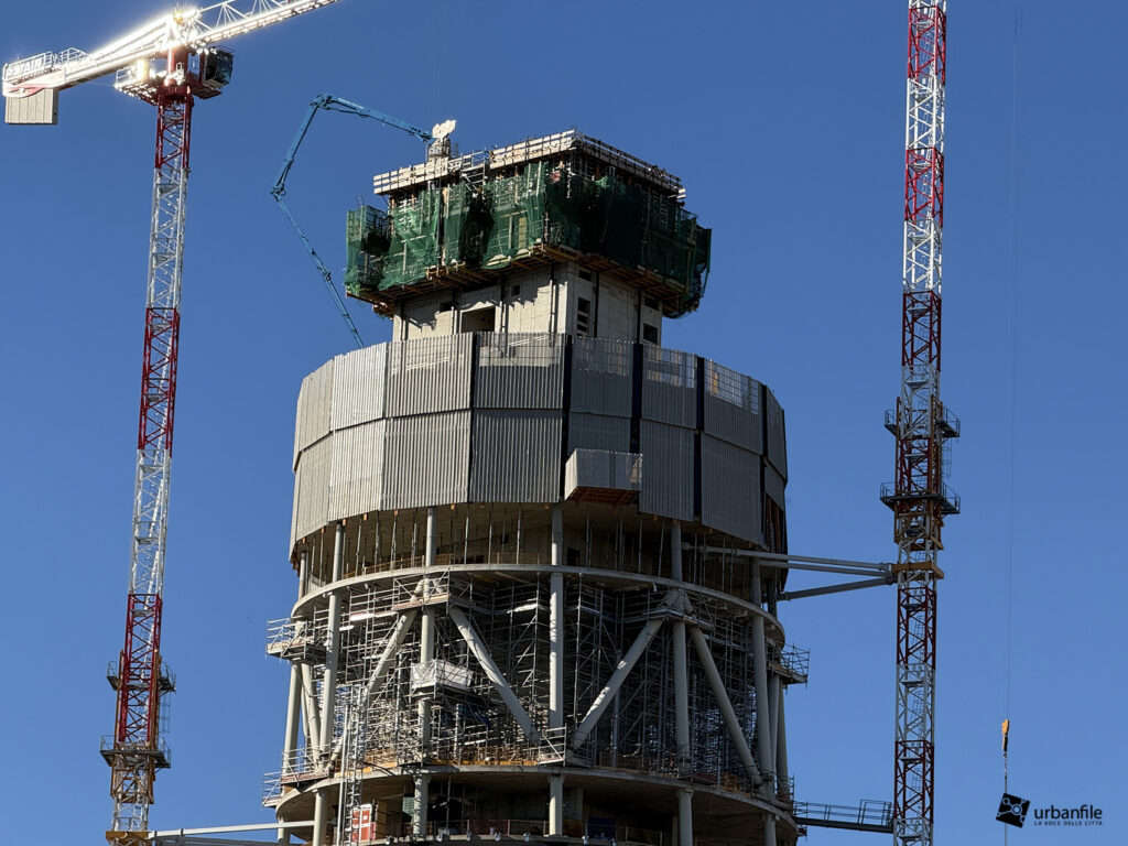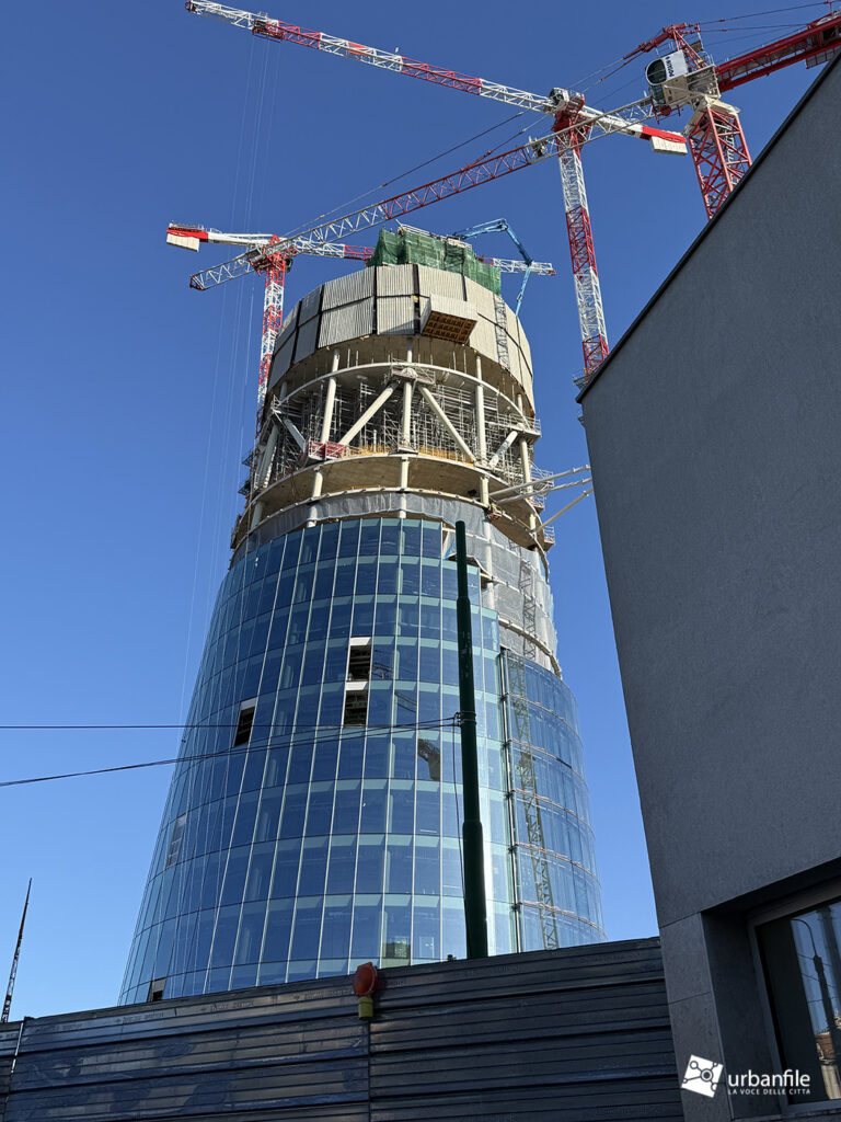 La torre cilindrica e rastremata avrà una pianta circolare e prevederà i primi 12 piani ad uso uffici, uno Sky Garden a 60 metri di altezza e aperto su uno dei suoi lati, seguiranno altri 10 piani di uffici ed un belvedere, accessibile dal pubblico, posto sulla sommità della torre. L’impresa che sta costruendo la torre è CMB con Colombo Costruzioni.