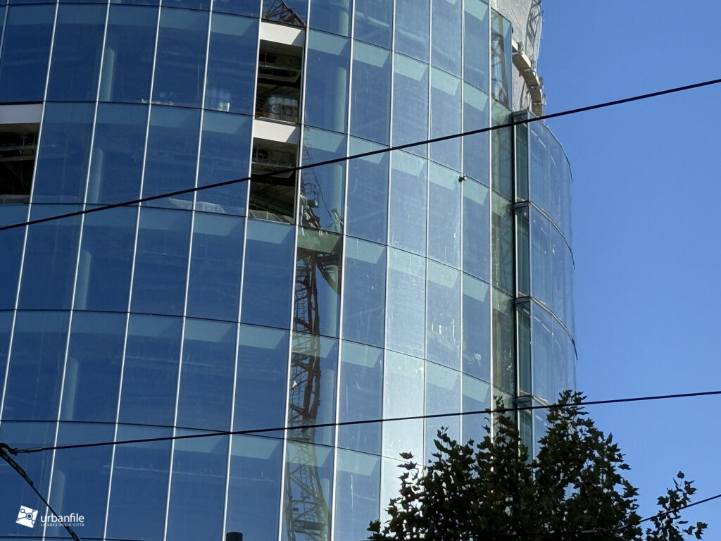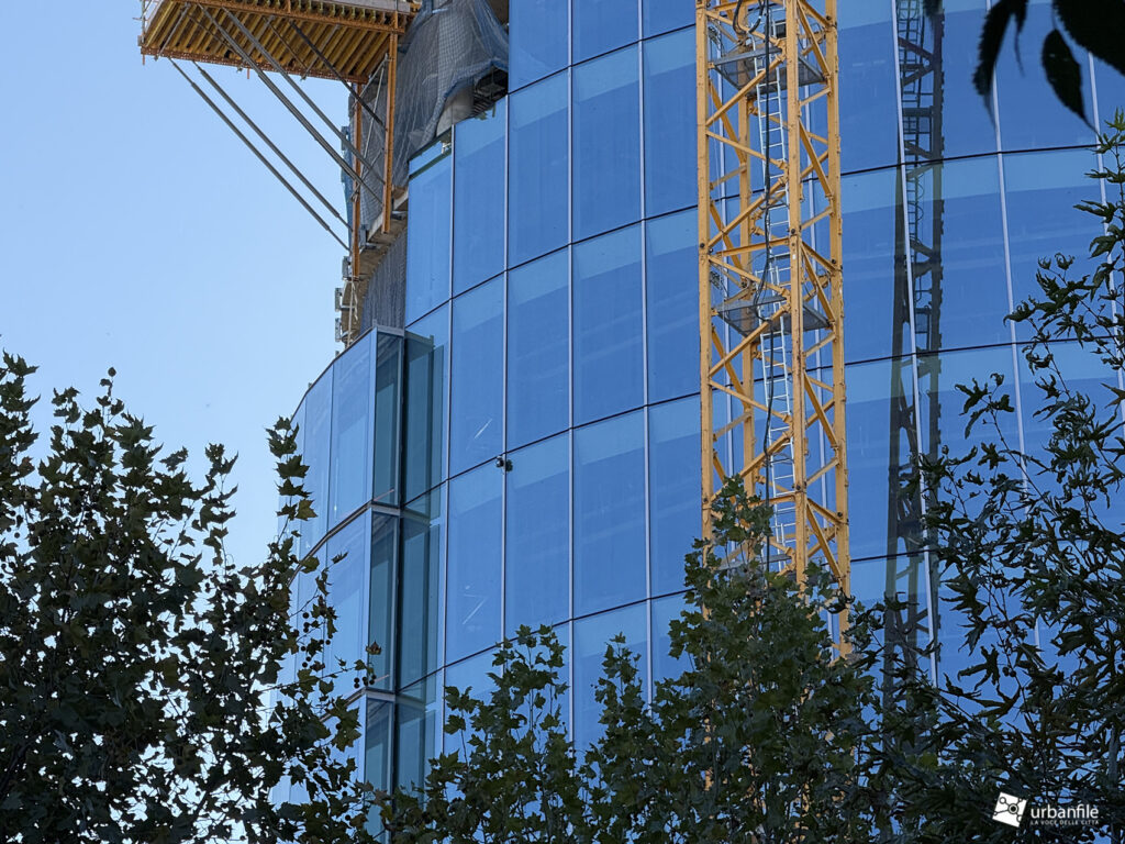 Nelle foto si noterà anche lo spessore delle vetrate poste sul lato meridionale della torre. Questo servirà come intercapedine per climatizzare meglio il lato più soleggiato della torre.
