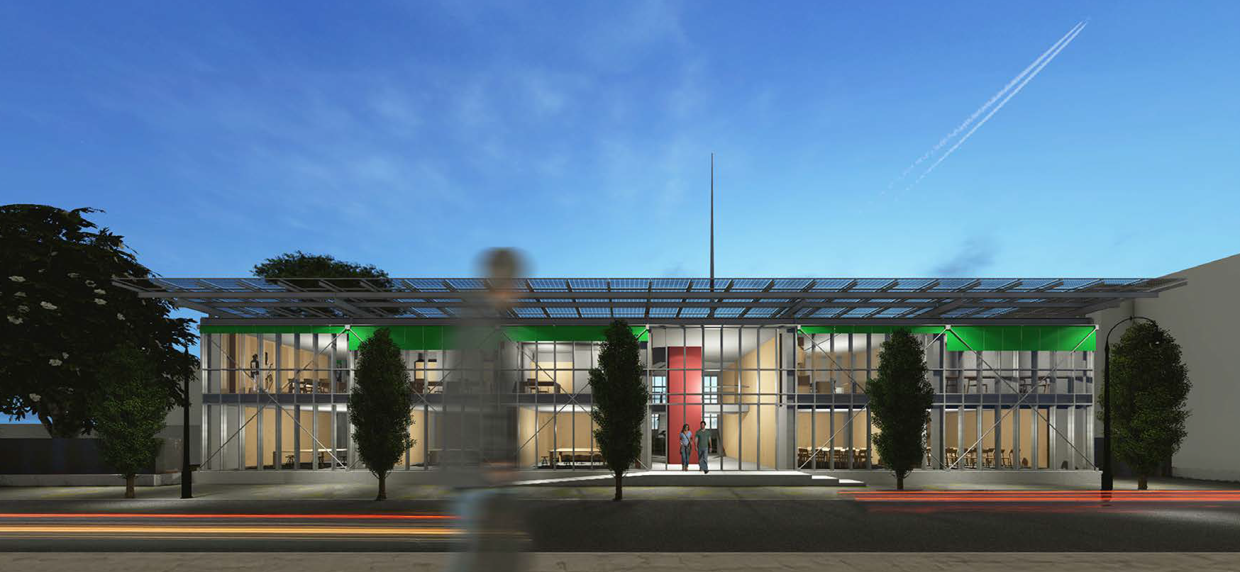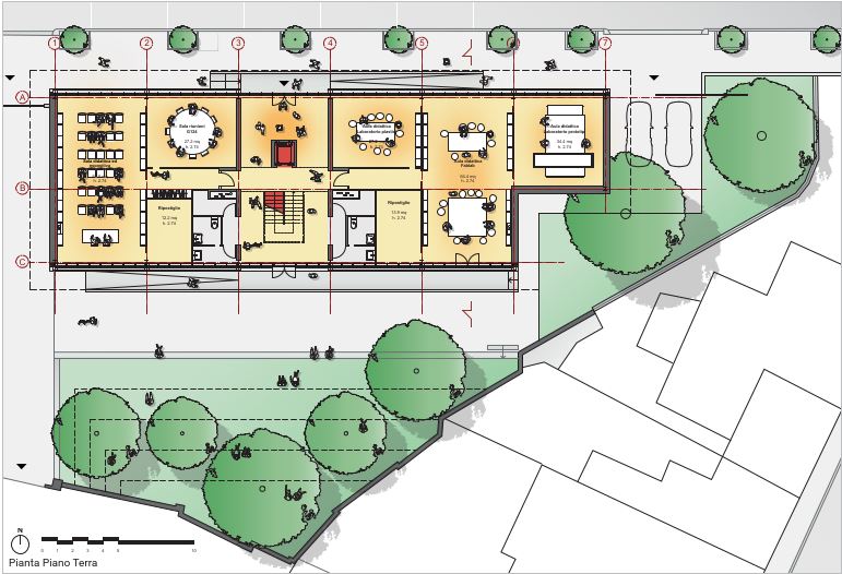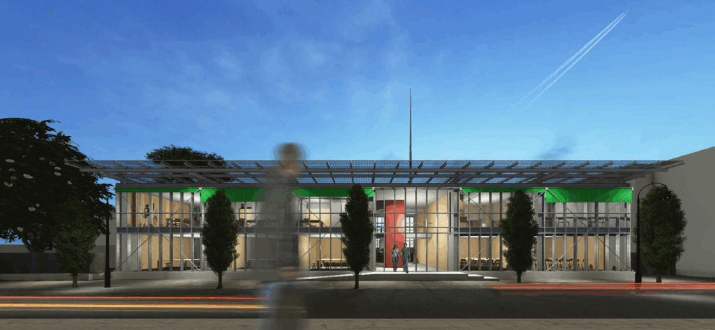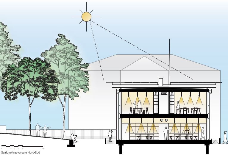 La descrizione del progetto è tratta dalla presentazione ufficiale dell’intervento secondo cui verrà realizzato un nuovo fabbricato con una cubatura inferiore rispetto all’esistente (-41%), orientato sull’asse Est-Ovest. L’immobile sarà arretrato di 1 metro rispetto l’attuale confine di proprietà e organizzato su due livelli fuori terra. Gli affacci di tutti gli ambienti della nuova costruzione saranno delimitati a Nord e Sud con facciate continue in vetro ed alluminio, schermate da sistemi di tendaggi avvolgibili oscuranti posti all’esterno, per ridurre l’irraggiamento solare all’interno degli ambienti. L’accesso all’edificio avverrà attraverso una rampa e dei gradini, per superare il dislivello tra spazi esterni e interni.