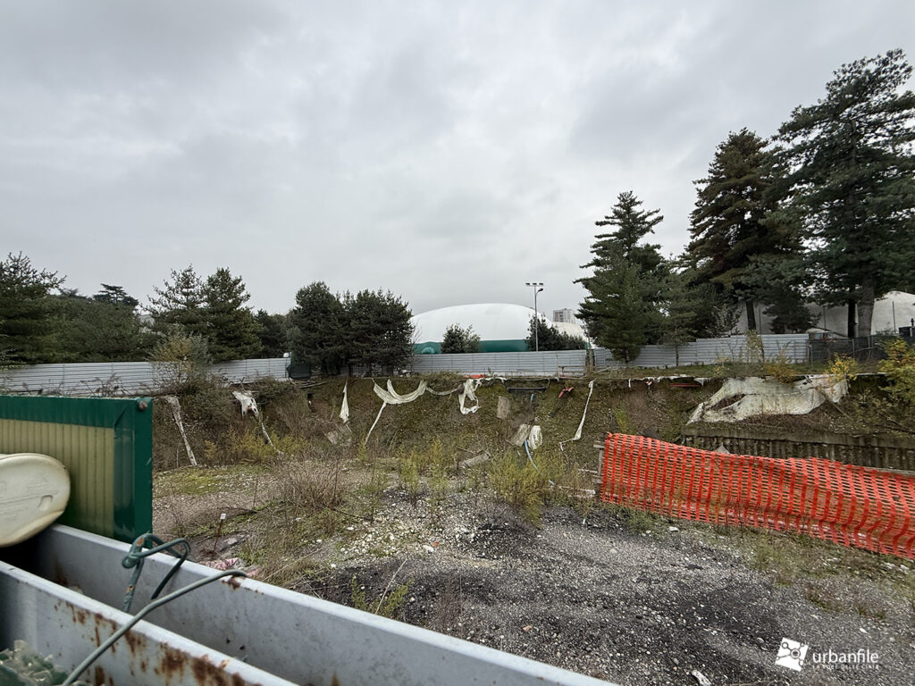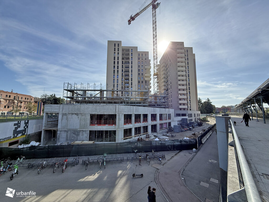 Dietro i palazzoni si trova, in via Ettore Ciccotti 5 il cantiere mai completato del parcheggio di interscambio aperto nel giugno del 2024.