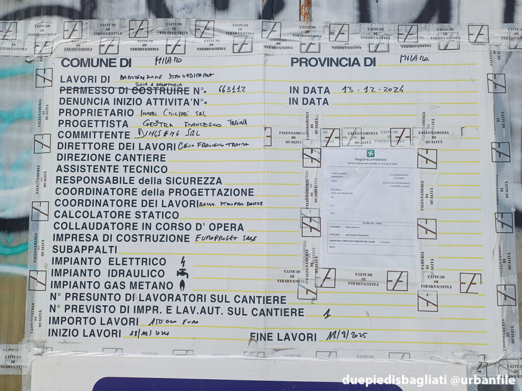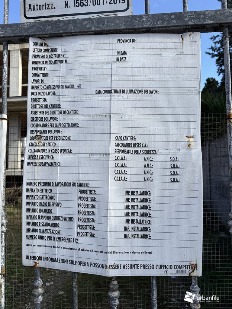 Il cartello di cantiere è illeggibile, perciò non abbiamo trovato molte informazioni.