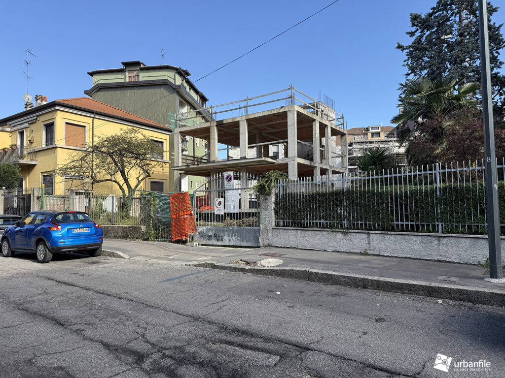 Non lontano troviamo, in Via Gian Rinaldo Carli 16 un piccolo cantiere in “travaglio” da qualche anno a dire il vero. Infatti, dopo la demolizione della villetta nel 2022 e l’avvio della uova costruzione l’anno successivo, dopo due anni tutto pare essersi fermato.