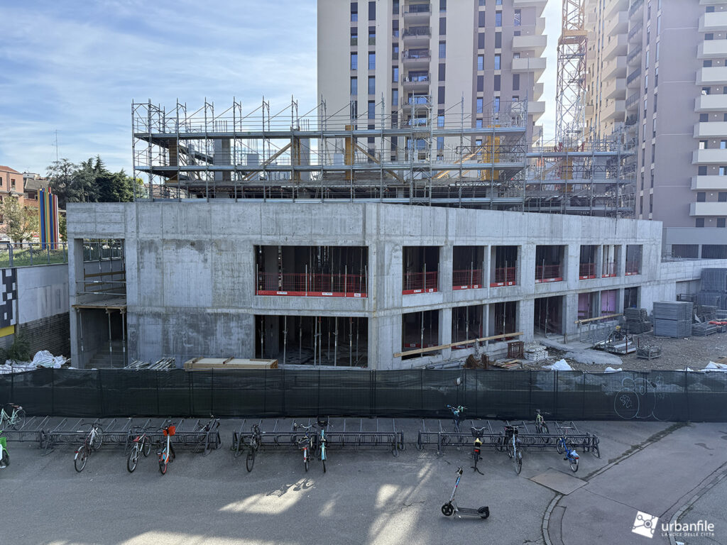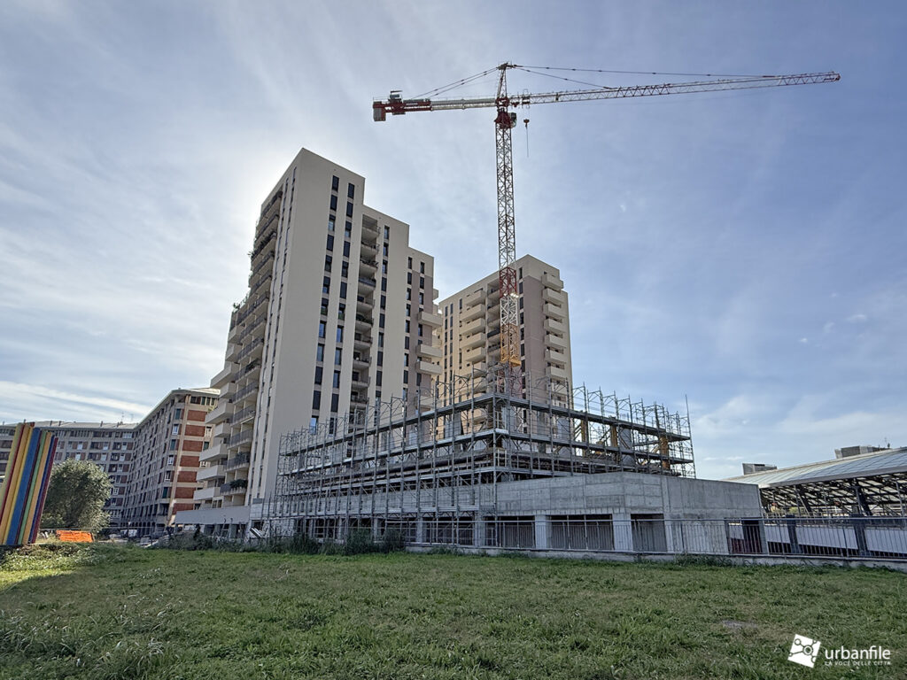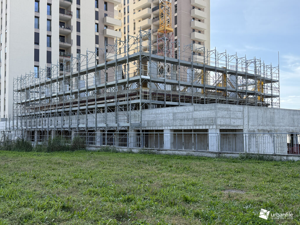 Spostiamoci ora nuovamente nell’area della stazione Affori FN, dove, in via Vincenzo Da Seregno 21, dopo la demolizione del vecchio edificio per uffici posto all’angolo con Via Pasquale Miglioretti è stato costruito, ma ancora impacchettato dalle impalcature, un nuovo edificio residenziale, il VDS21.