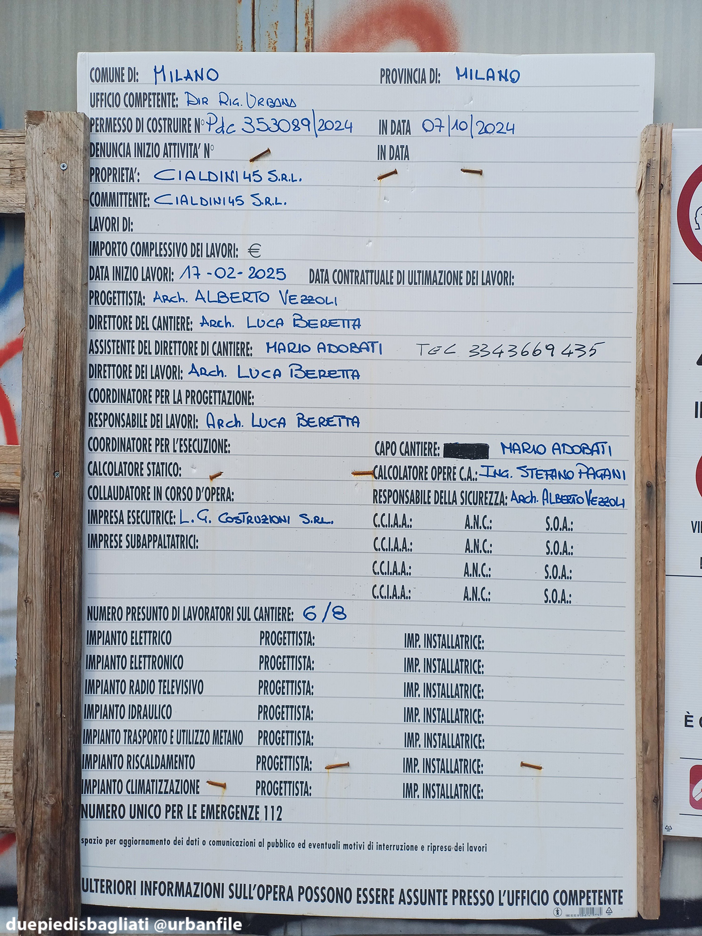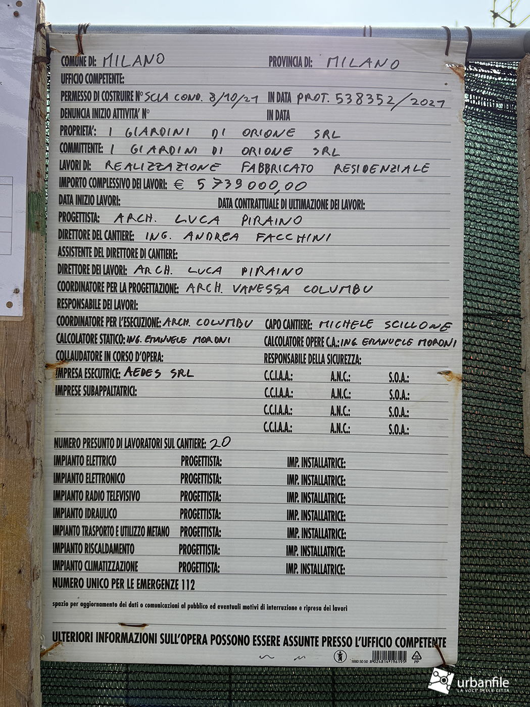 Il cartello di cantiere è illeggibile, perciò non abbiamo trovato molte informazioni.