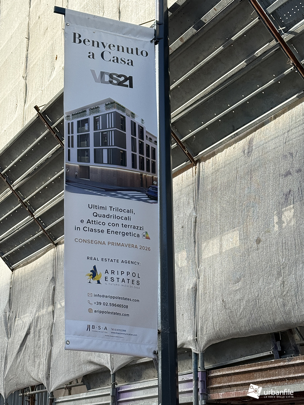 Spostiamoci ora nuovamente nell’area della stazione Affori FN, dove, in via Vincenzo Da Seregno 21, dopo la demolizione del vecchio edificio per uffici posto all’angolo con Via Pasquale Miglioretti è stato costruito, ma ancora impacchettato dalle impalcature, un nuovo edificio residenziale, il VDS21.