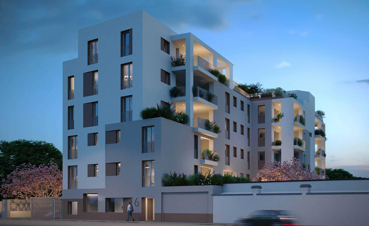 Pastro 6 sarà una palazzina di 5 piani animata da una serie di volumi assemblati con ampi terrazzi e circondata da un piccolo giardino condominiale.