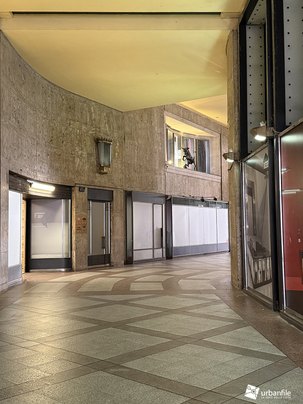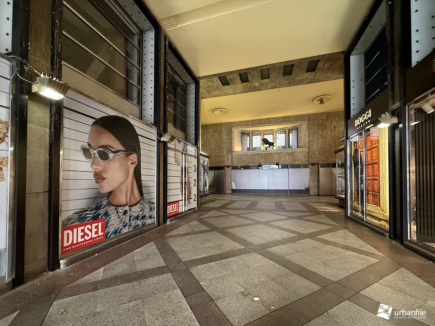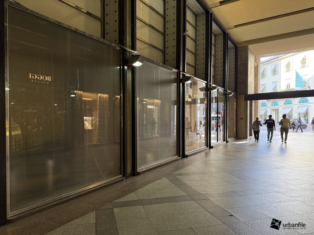 Vedere questo piccolo gioiello architettonico – caratterizzato dalle inconfondibili linee del razionalismo tendente al déco – cadere progressivamente nell’abbandono, lascia spazio a due possibili interpretazioni: o i contratti di locazione dei negozi stanno giungendo a scadenza in vista di una futura riqualificazione dell’intera galleria, oppure stiamo assistendo al segno di un declino inesorabile del commercio, che svuota di vita anche gli spazi più centrali, a due passi da via Monte Napoleone e da piazza San Babila, piazza che il cui aspetto è anch’esso sintomo di una sciatteria senza precedenti e che qualche giorno fa vi avevamo mostrato in un articolo dedicato.