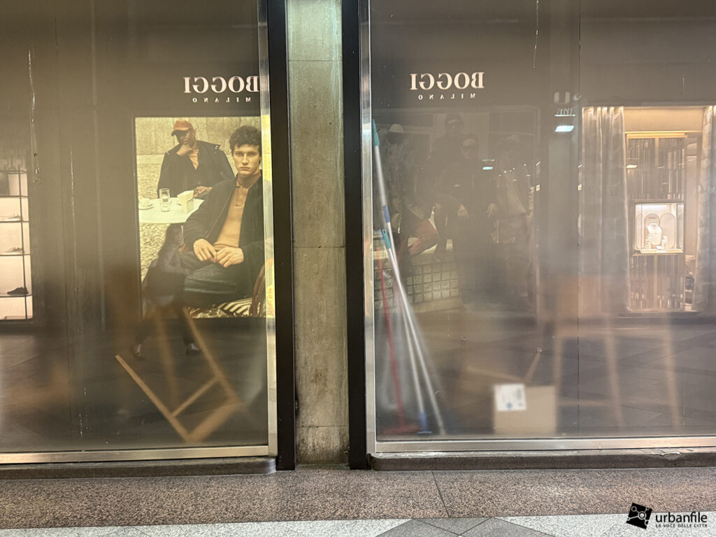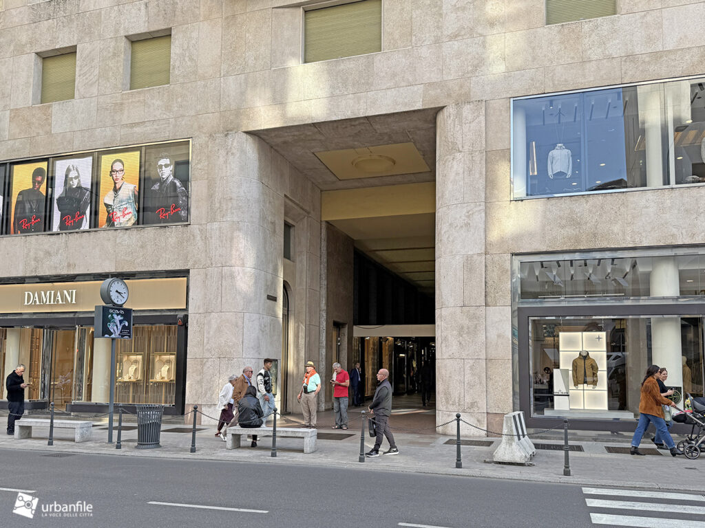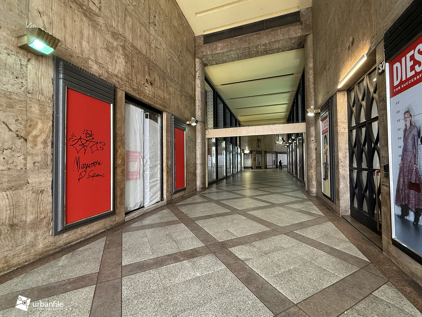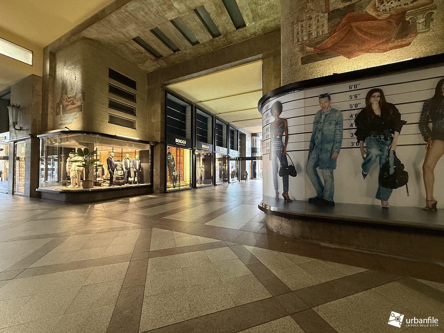 Vedere questo piccolo gioiello architettonico – caratterizzato dalle inconfondibili linee del razionalismo tendente al déco – cadere progressivamente nell’abbandono, lascia spazio a due possibili interpretazioni: o i contratti di locazione dei negozi stanno giungendo a scadenza in vista di una futura riqualificazione dell’intera galleria, oppure stiamo assistendo al segno di un declino inesorabile del commercio, che svuota di vita anche gli spazi più centrali, a due passi da via Monte Napoleone e da piazza San Babila, piazza che il cui aspetto è anch’esso sintomo di una sciatteria senza precedenti e che qualche giorno fa vi avevamo mostrato in un articolo dedicato.