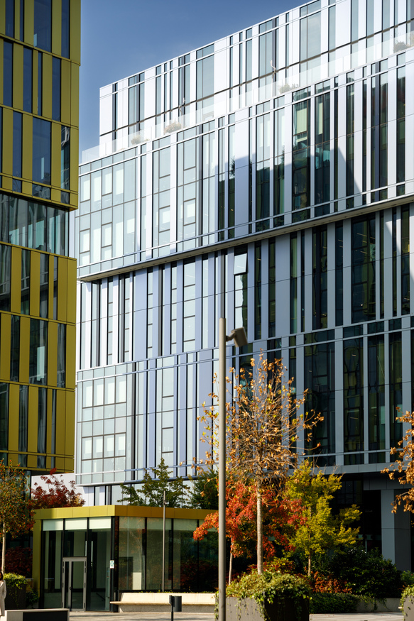 L’edificio, sviluppato su 9 piani per un totale di 13.000 mq, è stato progettato per garantire i più alti standard di sostenibilità ambientale e innovazione tecnologica, e si distingue per una facciata continua che alterna superfici vetrate a elementi opachi in metallo. Con le sue terrazze panoramiche, i percorsi pedonali e le aree verdi, il complesso, che già ospitava le sedi di AON e NTT Data, si inserisce in un tessuto urbano che vive di giorno grazie agli uffici e la sera grazie agli studenti, diventando uno dei luoghi più vitali della Barona.