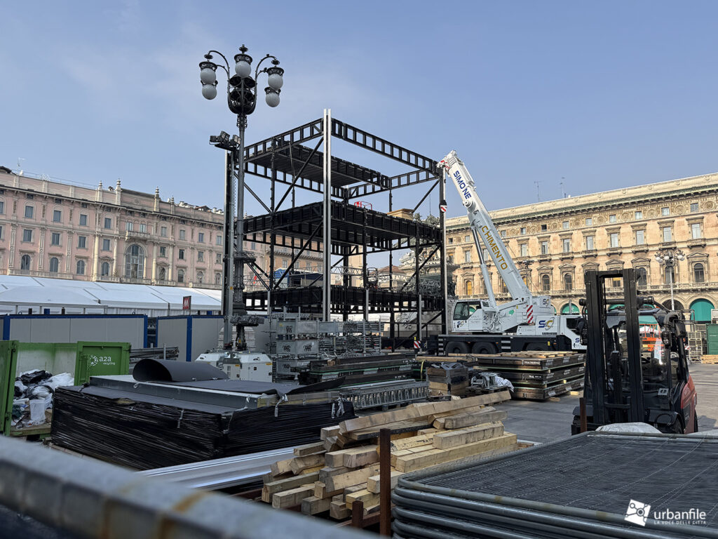 Novembre 2025. In questi giorni è in fase di montaggio, proprio di fronte al Duomo, simbolo della città, la struttura destinata a ospitare gli studi televisivi internazionali che seguiranno in diretta i Giochi Olimpici Invernali Milano-Cortina 2026.