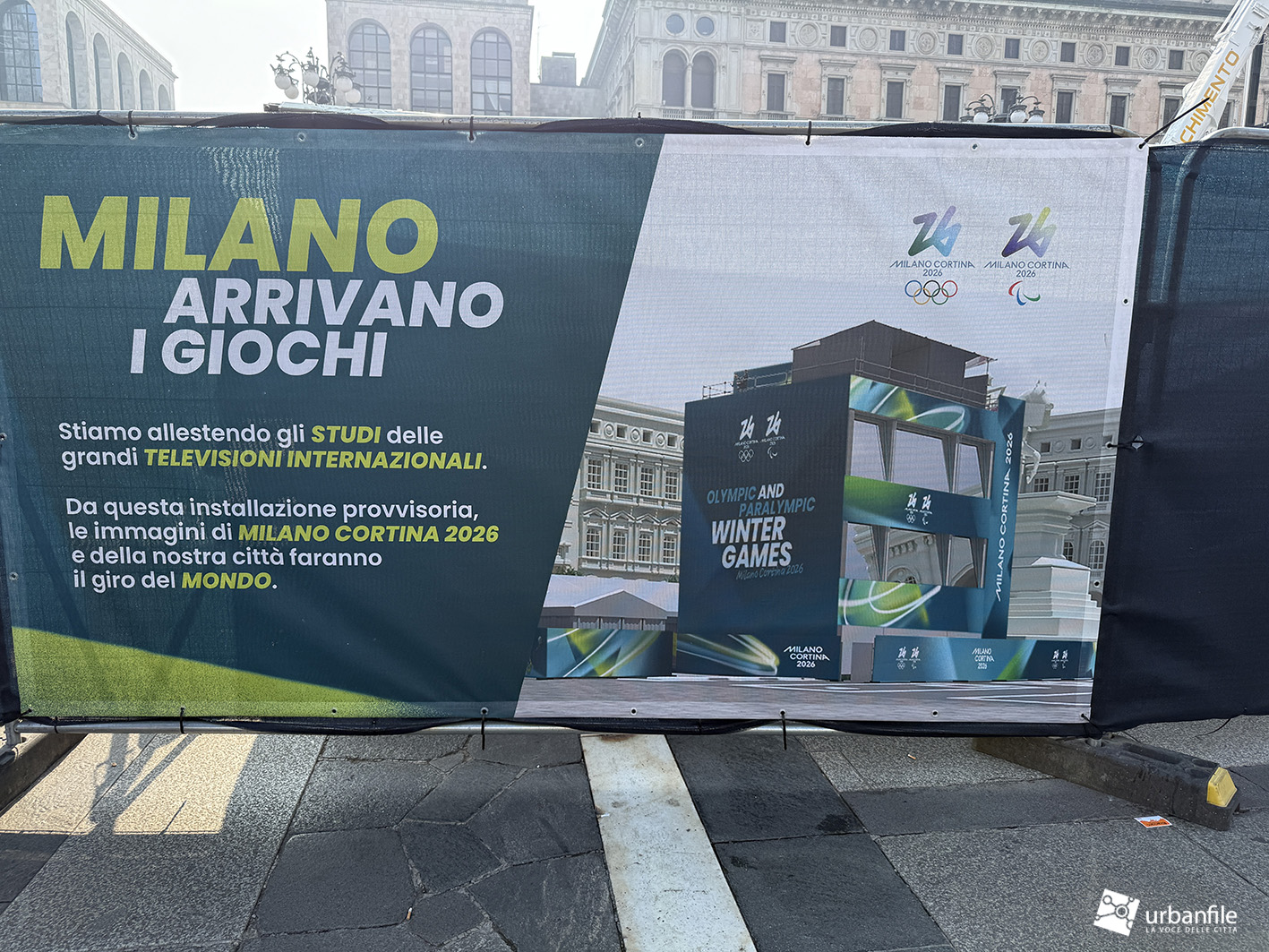 Novembre 2025. In questi giorni è in fase di montaggio, proprio di fronte al Duomo, simbolo della città, la struttura destinata a ospitare gli studi televisivi internazionali che seguiranno in diretta i Giochi Olimpici Invernali Milano-Cortina 2026.
