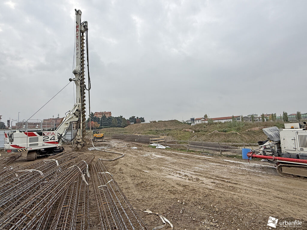 L’enorme cantiere si trova proprio nel Comune di Novate alle porte di Milano, dove, a ridosso di Vialba e Quarto Oggiaro dovrebbe sorgere un nuovo quartiere denominato NOM (North Of Milan). Come si vede, questa volta, dopo quasi due anni di attesa, il cantiere pare essersi animato. Infatti una palificatrice è già in fase operativa.