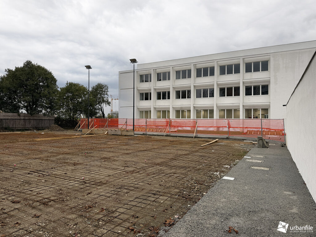 Pochi metri e entriamo nel territorio di Quarto Oggiaro e Milano, dove si trova il cantiere per il nuovo Liceo Artistico Giovanni Gastel (ex Frisi) di via Amoretti 61 e 63.