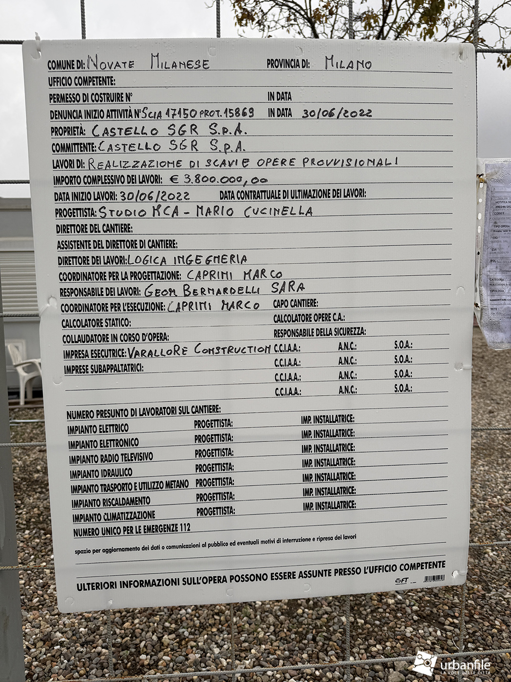 L’enorme cantiere si trova proprio nel Comune di Novate alle porte di Milano, dove, a ridosso di Vialba e Quarto Oggiaro dovrebbe sorgere un nuovo quartiere denominato NOM (North Of Milan). Come si vede, questa volta, dopo quasi due anni di attesa, il cantiere pare essersi animato. Infatti una palificatrice è già in fase operativa.