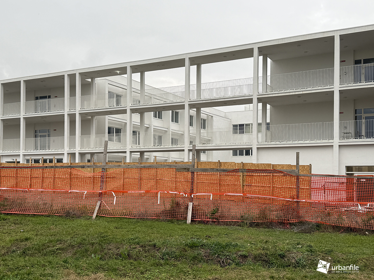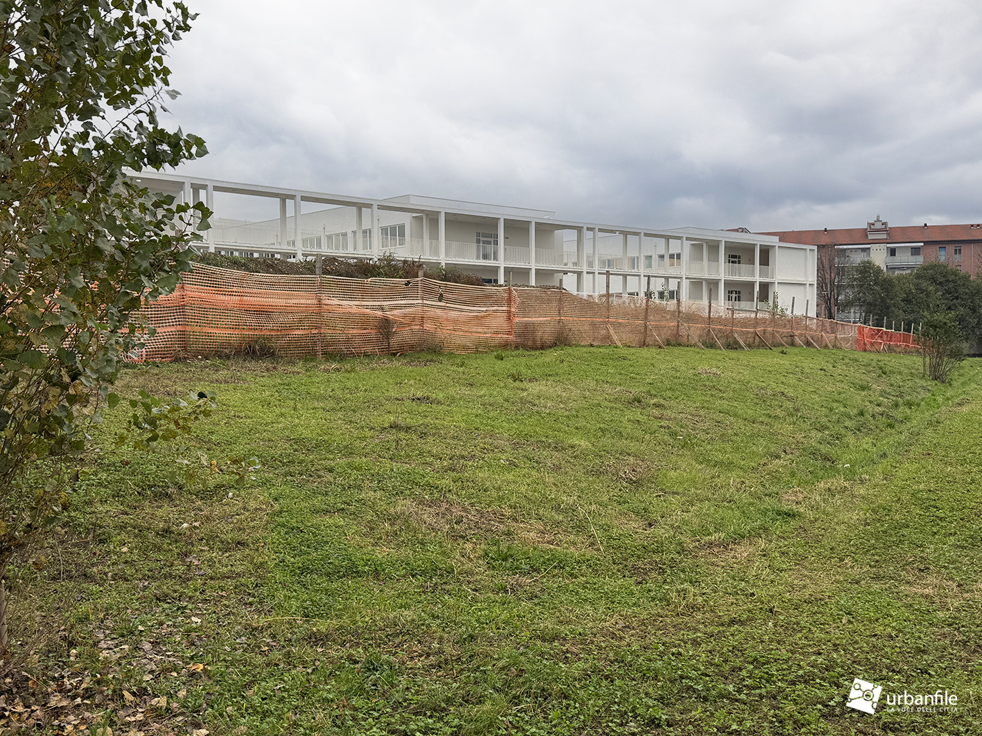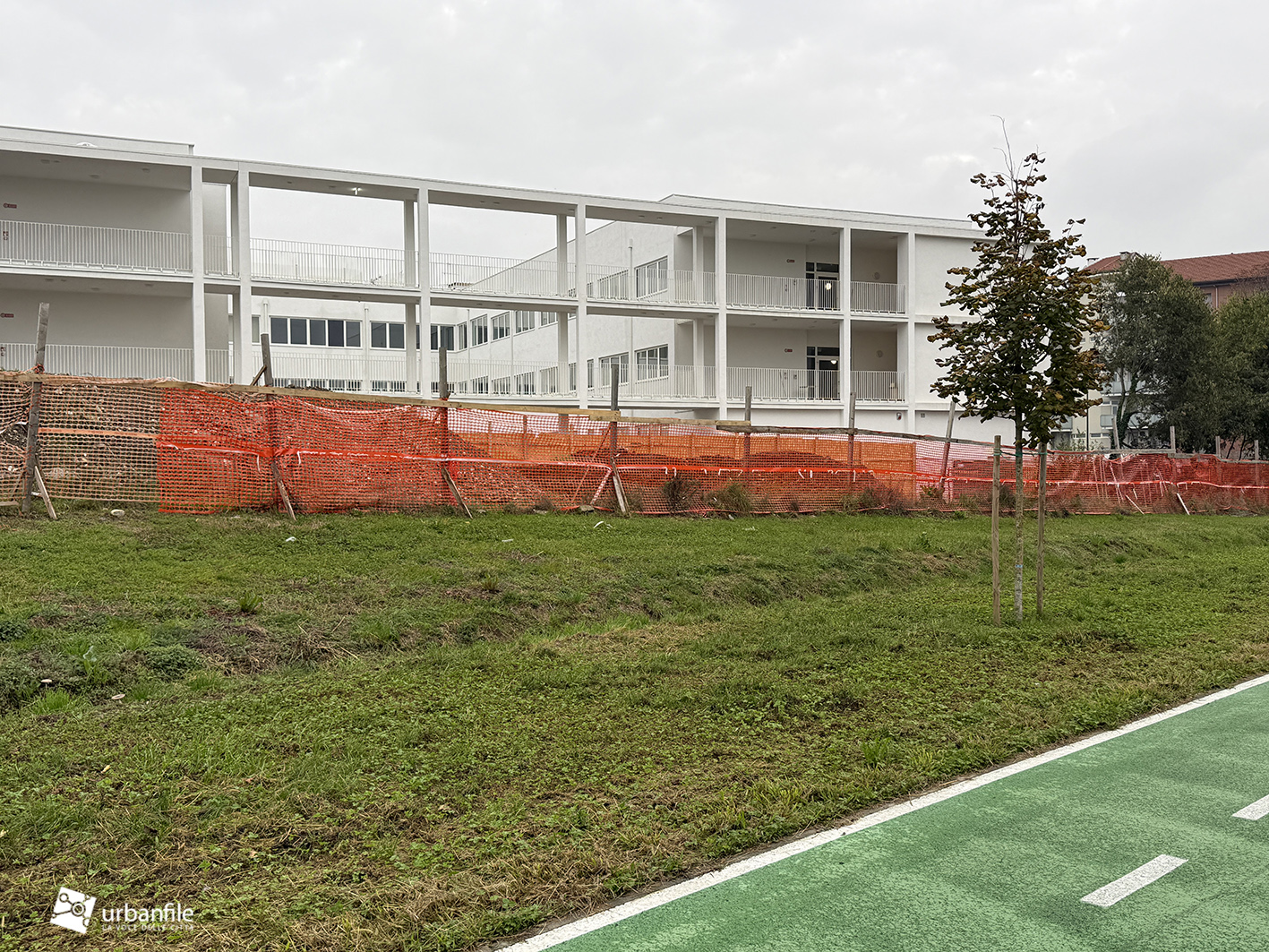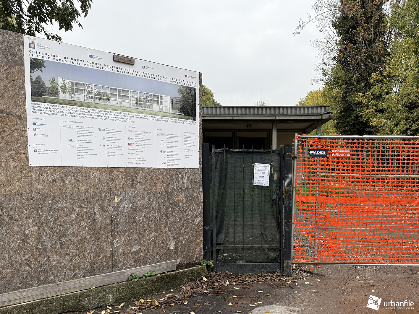 Pochi metri e entriamo nel territorio di Quarto Oggiaro e Milano, dove si trova il cantiere per il nuovo Liceo Artistico Giovanni Gastel (ex Frisi) di via Amoretti 61 e 63.
