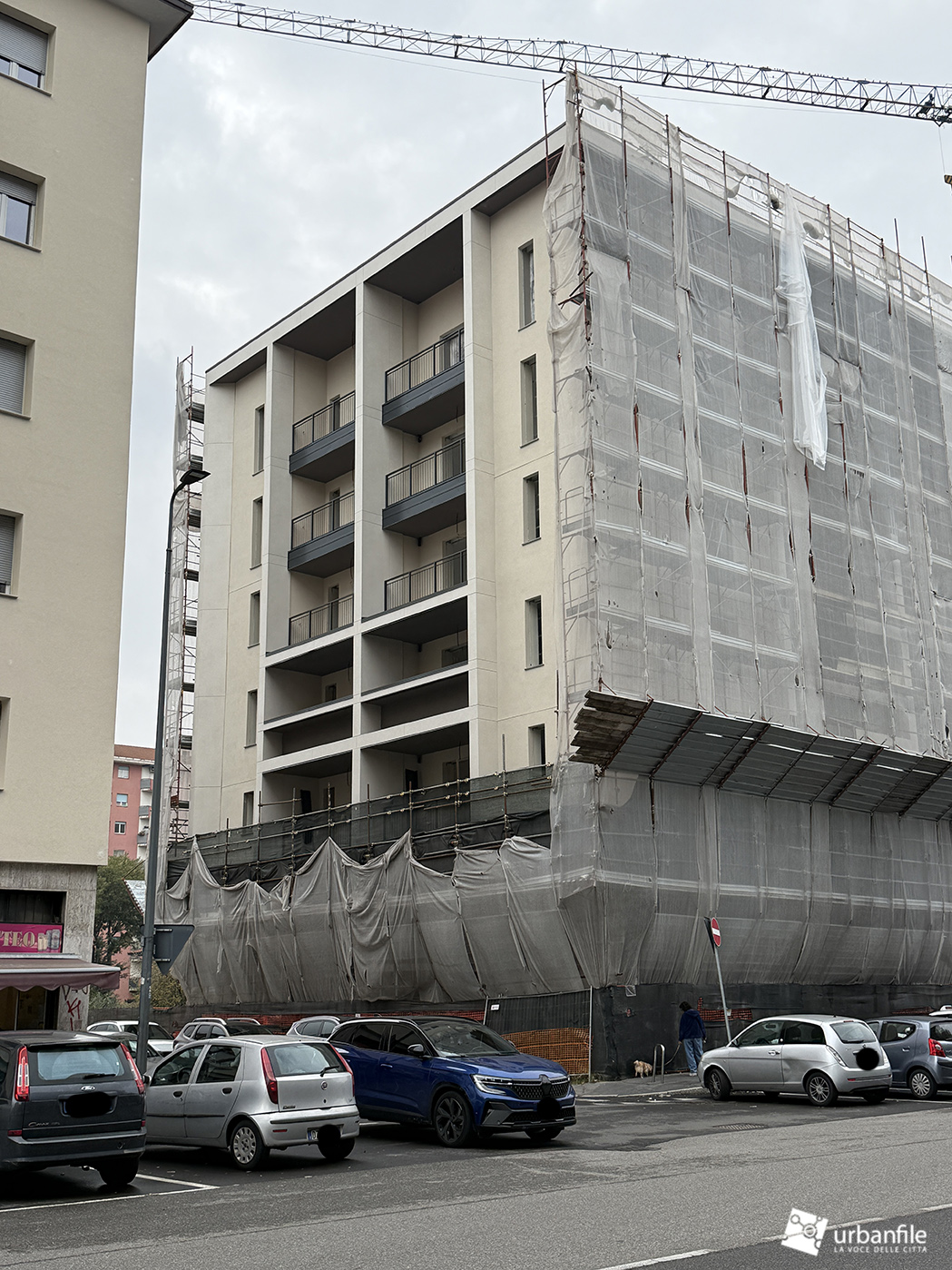 Scendiamo verso il centro città, e passiamo dove si trova il cantiere per The Garden in Via Cesare Pascarella angolo Via Privata Maria Melato. Anche questo cantiere prosegue spedito. Lo studio Ingegneria Dominoni è stato incaricato di progettare il nuovo edificio residenziale.