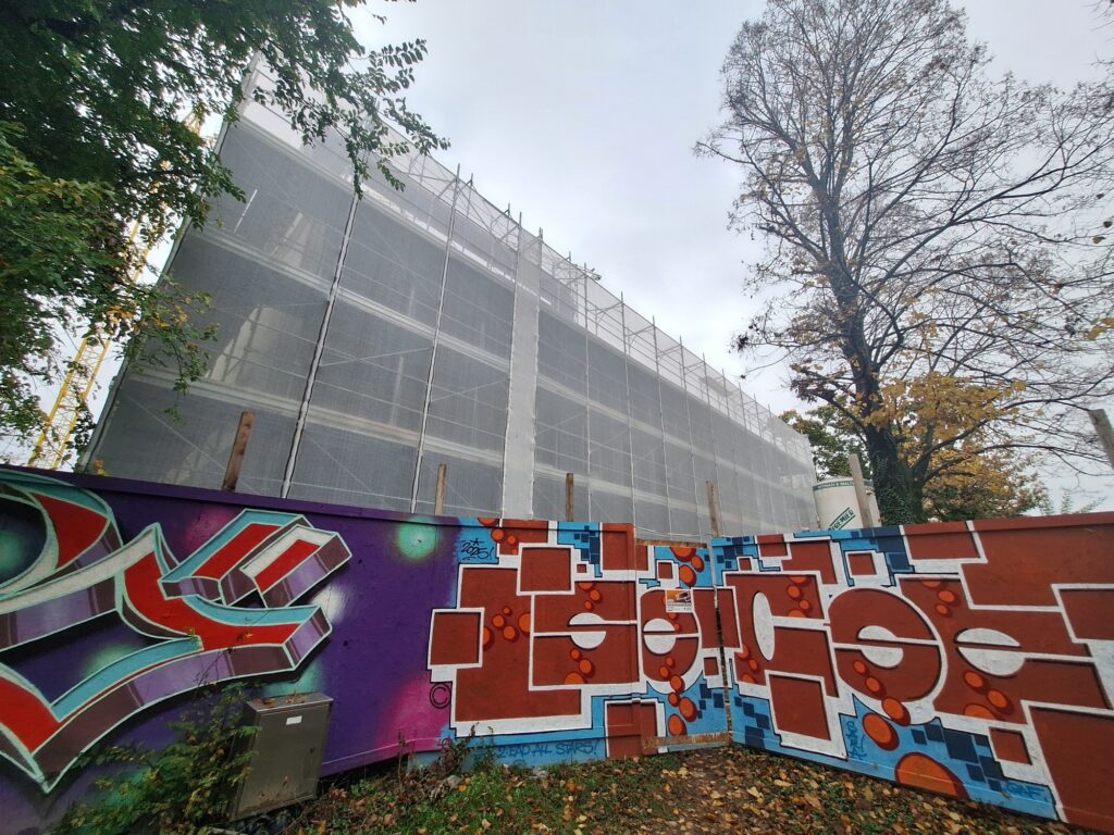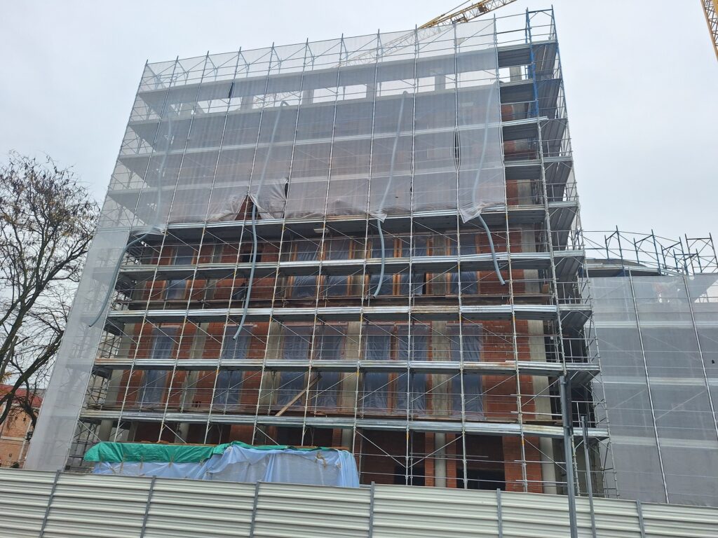 I lavori di edilizia sono ormai pressoché conclusi. Solette e murature perimetrali realizzate in forati sono in fase di completamento. All’interno abbiamo la sensazione che si stiano svolgendo anche i lavori di impiantistica visto che alcune finestre sono state tamponate provvisoriamente con dei teli in nylon. Nessuna attività di serramentistica al momento è in fase di realizzazione.