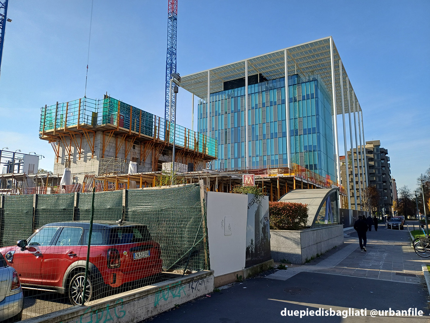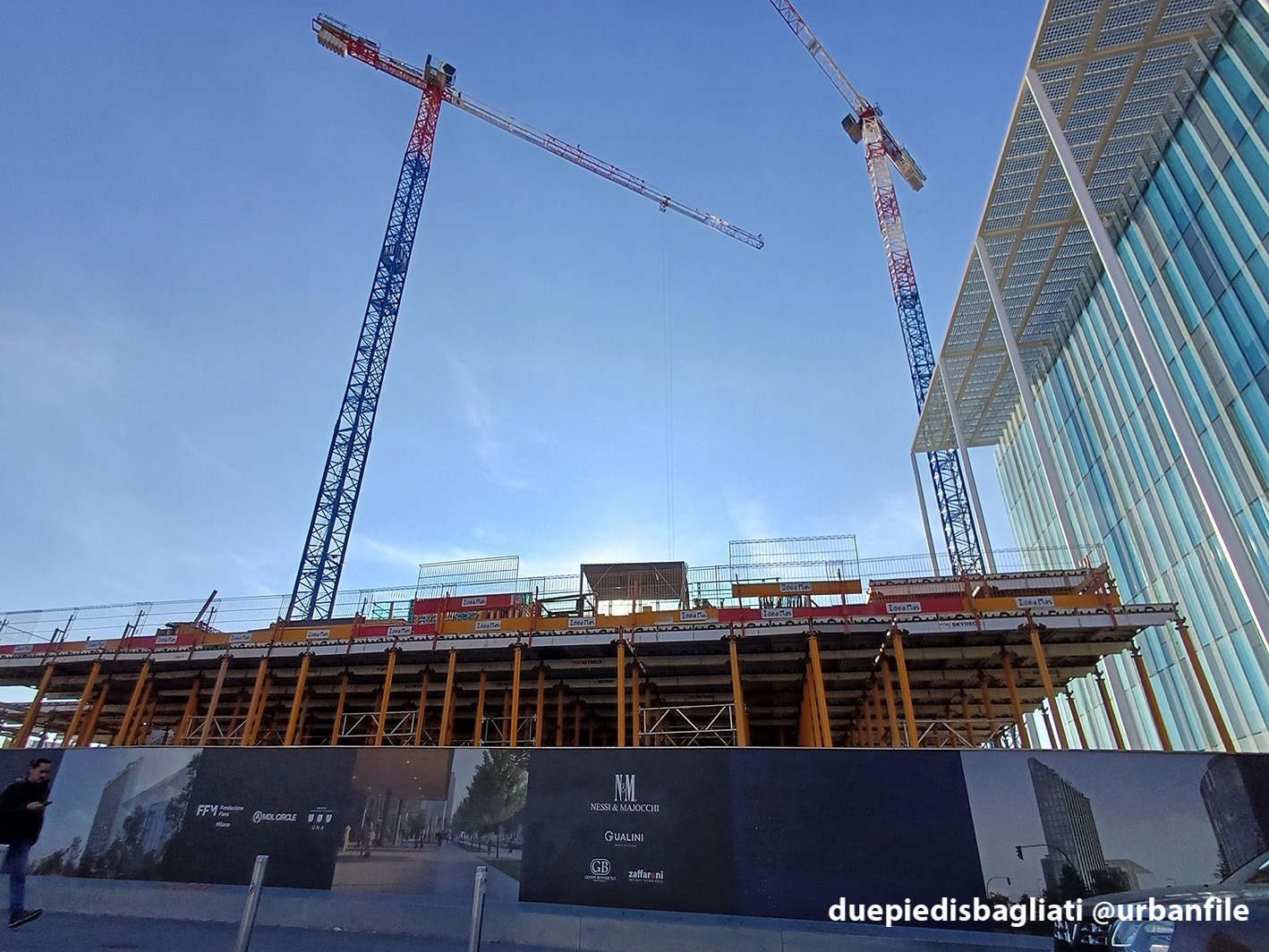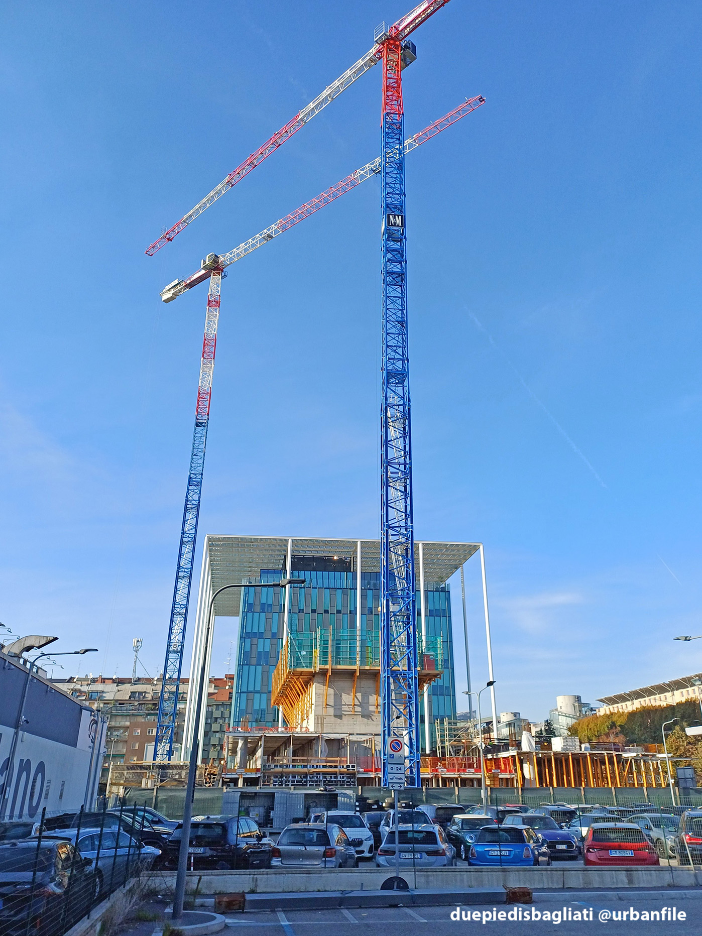 Si tratta del cantiere per la realizzazione di un nuovo albergo da 176 camere distribuite su 22 piani, progettato per supportare anche le attività espositive e congressuali dell’Allianz MiCo. Il concept architettonico è firmato dallo studio Amdl Circle e da Michele De Lucchi, mentre i disegni esecutivi sono a cura dello studio Lombardini22. L’hotel avrebbe dovuto essere completato in tempo per le Olimpiadi Invernali Milano-Cortina 2026, ma tale obiettivo appare ormai difficilmente raggiungibile.