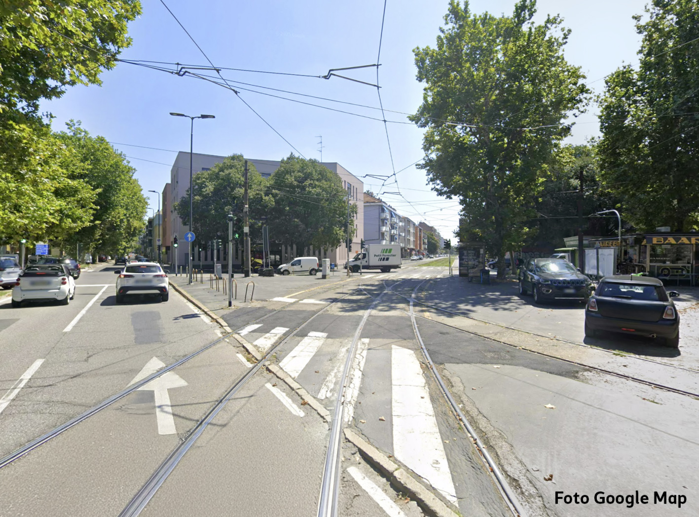 Spesso, infatti, il tram è costretto a fermarsi con la parte posteriore che sporge per oltre un metro nella carreggiata provenendo da via Simone Stratico, creando una potenziale situazione di pericolo per chi scende o sale dal tram e aumentando il rischio di incidenti. Come si può osservare nelle imagini qui di seguito.
