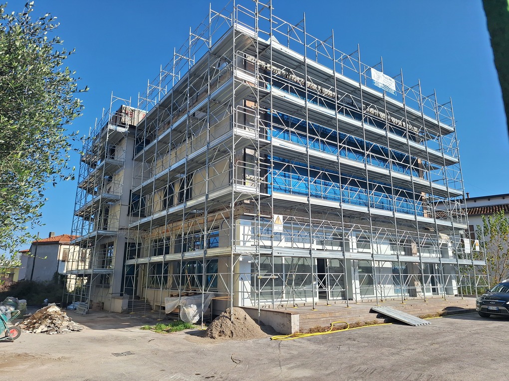 Il cantiere è iniziato solo da pochi mesi, ma sono già state rimosse parte delle facciate e  sanate quelle esistenti. Inoltre, è  stato realizzato un ponteggio intorno all’edificio che servirà per risanare le murature esterne.