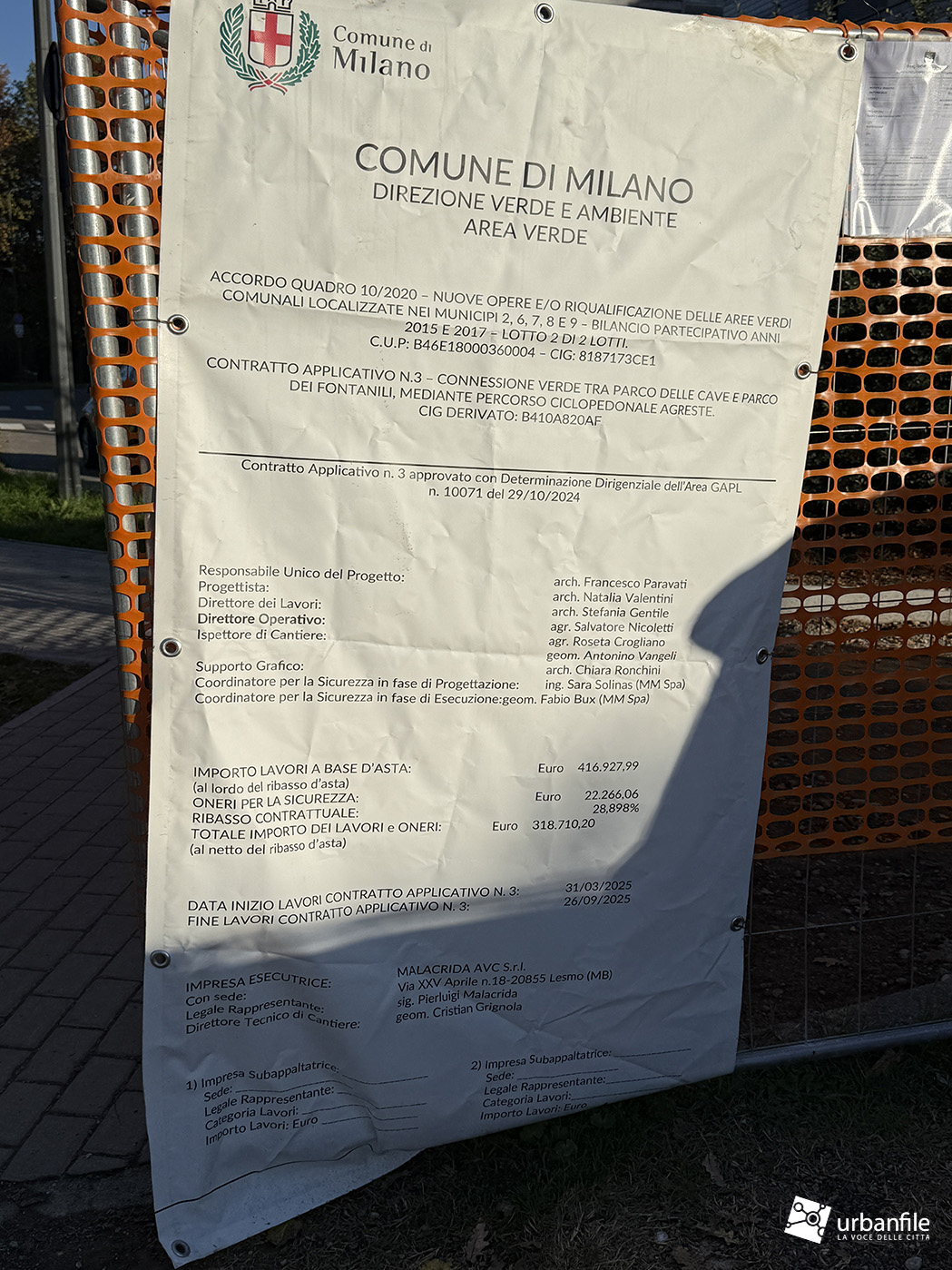 Novembre 2025. Da qualche settimana ormai, sono cominciati i lavori di realizzazione del nuovo percorso ciclopedonale di connessione tra il Parco dei Fontanili e il Parco delle Cave, progetto vincitore del Bilancio Partecipativo 2017/2018.